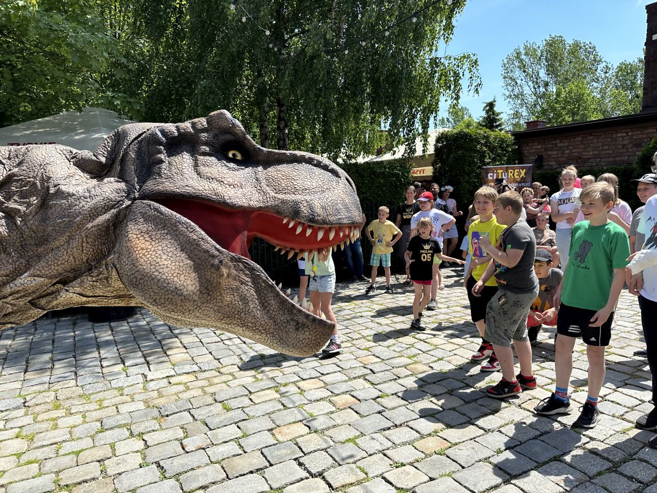 Po godz. 10:00 rozpoczęła się zabawa. Dzieciaki miały okazję poznać psich ratowników Hellboya i Daisy, którzy przybyli w towarzystwie Jarogniewa Krupińskiego i Przemysława Kaczora z grupy poszukiwawczo-ratowniczej OSP Dąbrówka Mała. Mysłowiccy policjanci zaprosili najmłodszych do swoich radiowozów i na motocykl, opowiadając przy tym o bezpieczeństwie na drodze. Sprzęt ratowniczy zaprezentowali również strażacy z PSP Mysłowice, a Nadleśnictwo Katowice przyjechało z sadzonkami drzew do posadzenia w ogrodach przy każdej placówce. Imprezę odwiedzili także ogromny dinozaur ciTyREX oraz Spiderman, który częstował gorącymi pączkami.
