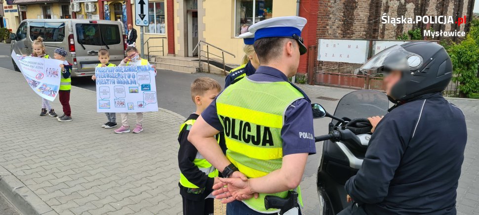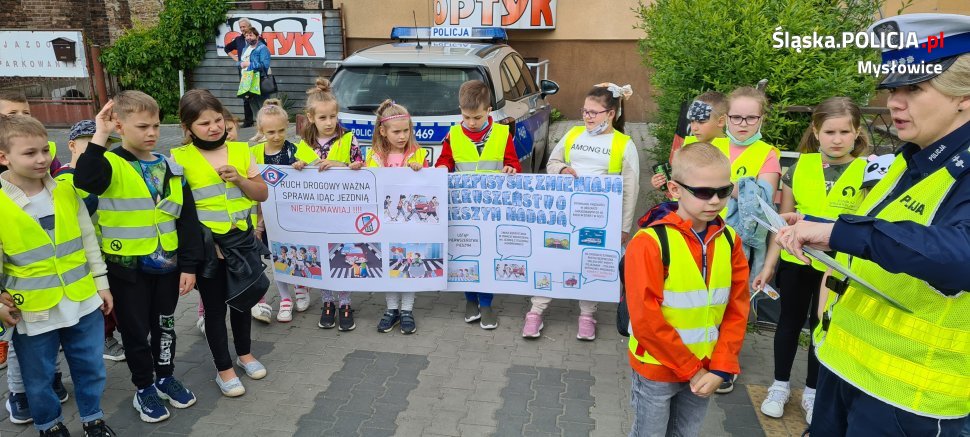 Od 1 czerwca 2021 obowiązują nowe regulacje w ruchu drogowym. Dotyczą zarówno kierujących, jak i pieszych. Nowe przepisy dokładnie precyzują również wzajemną relację pomiędzy kierującym a pieszym przechodzącym przez jezdnię. Dlatego 1 czerwca policjanci ruchu drogowego wraz z uczniami klas pierwszych Szkoły Podstawowej nr 13 w Mysłowicach informowali kierowców i pieszych o wprowadzonych zmianach.