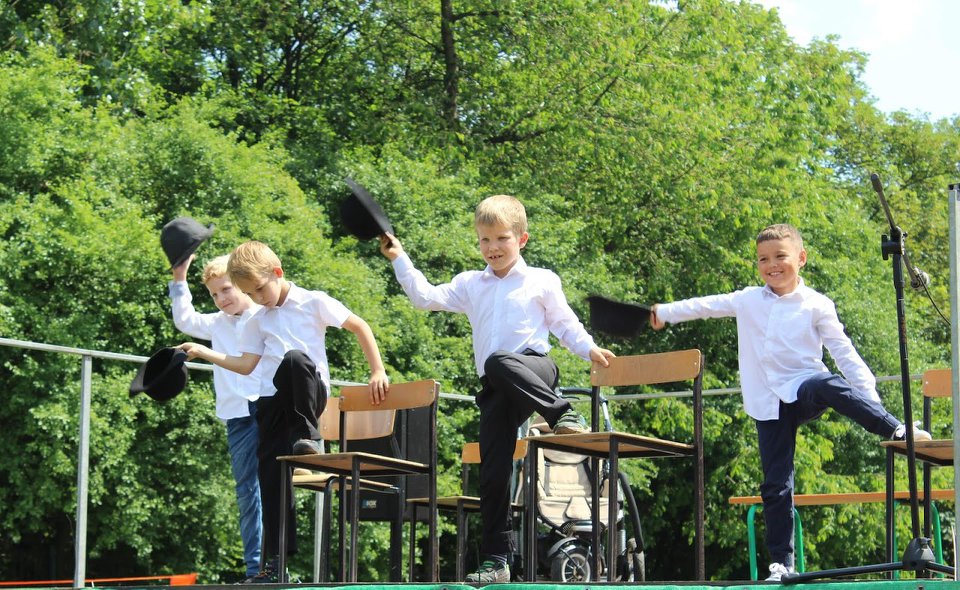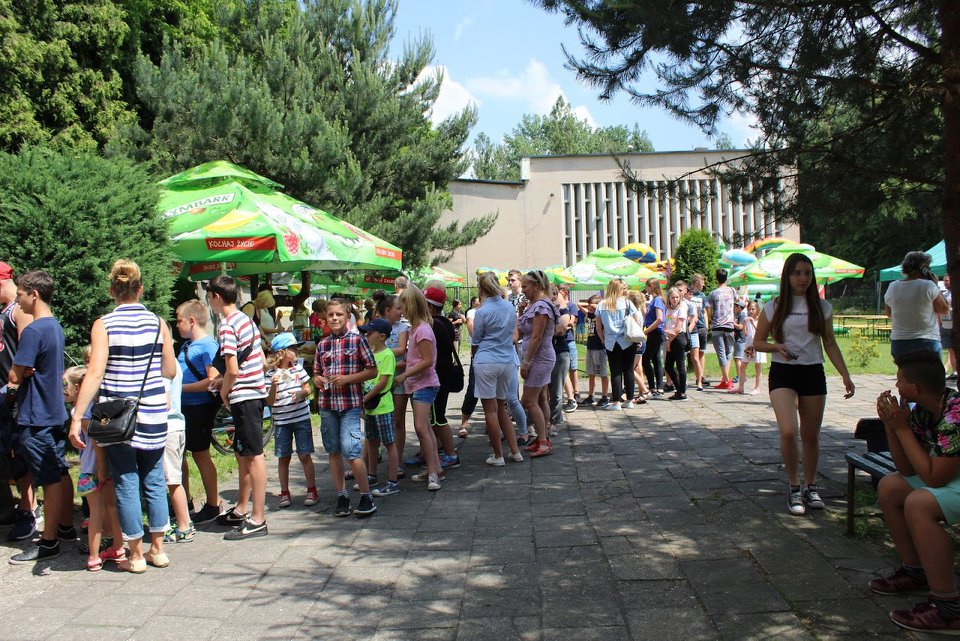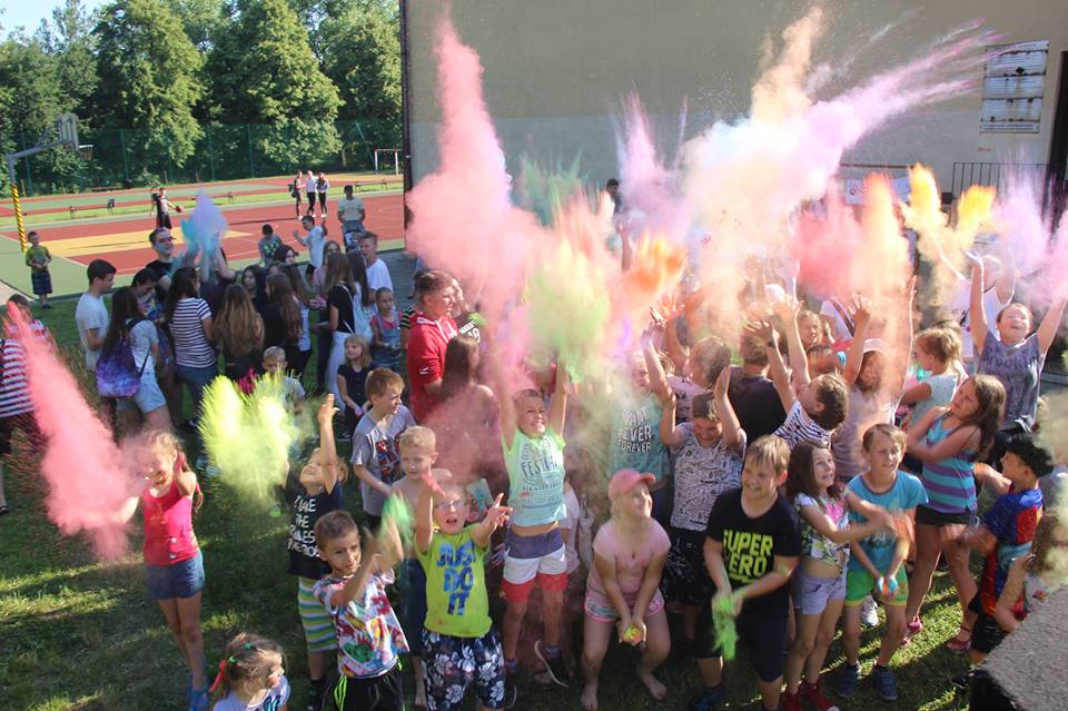 Nad jego organizacją czuwała wicedyrektor Aneta Szczęsny i nauczyciel wychowania fizycznego Tomasz Kręgiel. Jak zwykle pogoda dopisała, a uczestnicy mogli skorzystać z atrakcji w pełnym słońcu. Było malowanie twarzy, dmuchane zamki, ciesząca się wielką popularnością loteria, można było puszczać wielkie mydlane banki, przejechać się powozem lub spróbować sił w rzutkach. Strażacy zaprezentowali też dzieciom naukę pierwszej pomocy i zorganizowali zabawę z użyciem strażackiej sikawki. Zabawa wybuchającymi kolorami też była wspaniała, wszyscy, którzy wpadli pod wielobarwny pył, byli zadowoleni, a mamy nie protestowały – przynajmniej nie głośno.