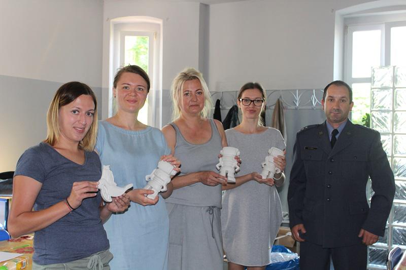 W tym właśnie obszarze tematycznym– uwrażliwiania – prowadzone są warsztaty terapii zajęciowej podczas których osadzeni tworzą gipsowe figurki: zwierzątka, owady, postacie z bajek – do samodzielnego pomalowania przez dzieci. Od kilku lat figurki te są przekazywane dzieciom w placówkach opiekuńczych i wychowawczych. Tym razem stworzone przez osadzonych podarunki trafiły do podopiecznych Świetlicy Socjoterapeutycznej Miejskiego Ośrodka Pomocy Społecznej w Sosnowcu.