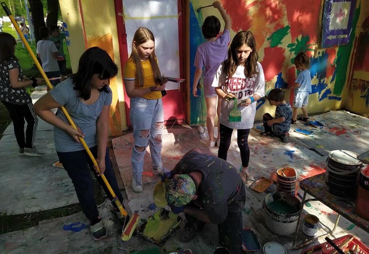Teraz czas na prace wykończeniowe. Część działań Adam Plackowski zrealizował w poniedziałek 4 czerwca z podopiecznymi Domu Dziecka im. Ojca Pio w ramach pracowni „Popołudniowe widzenie”.