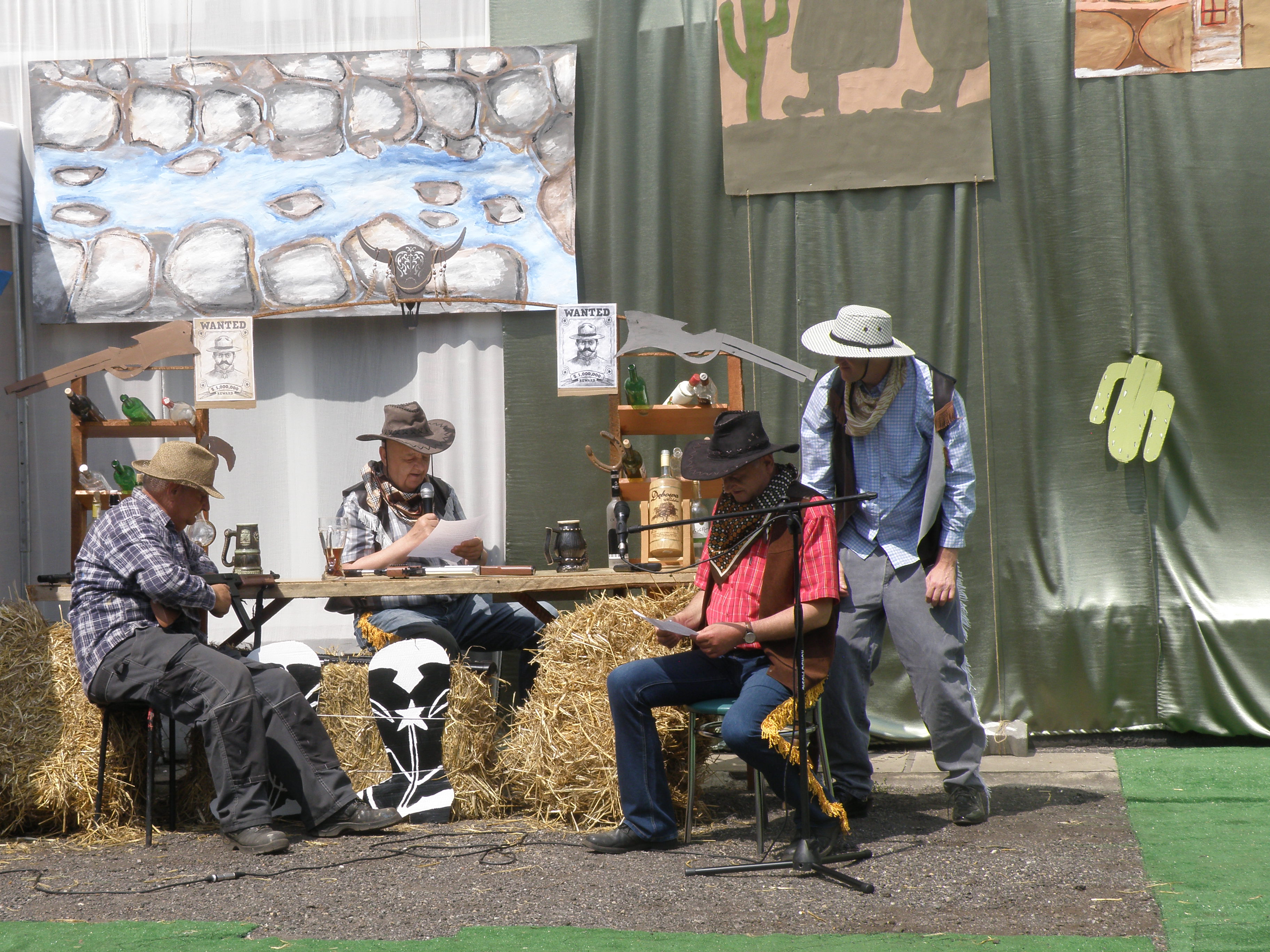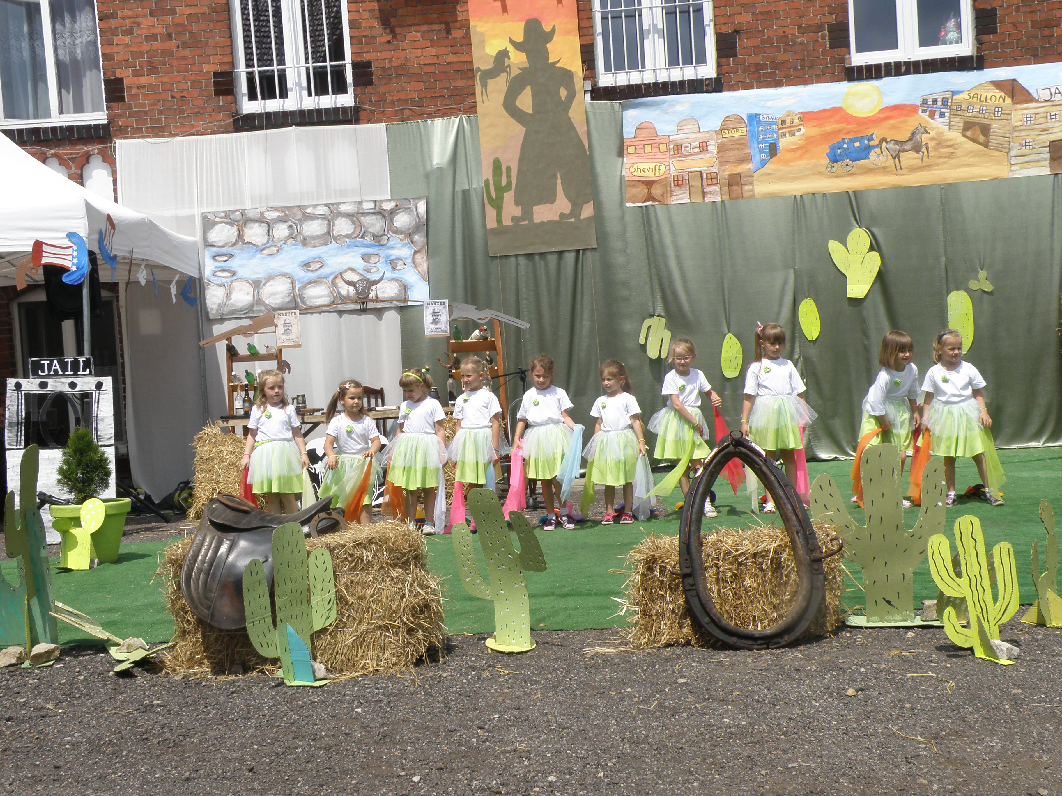Była kowbojska muzyka, o którą zadbał Piotr Nowatkowski, były amerykańskie hamburgery i przepiękne kaktusowe dekoracje na stołach. Na scenie w westernowym klimacie wystąpiły maluchy z Przedszkola nr 1, uczniowie Zespołu Szkół Specjalnych z Brzęczkowic oraz zespół kabaretowy Słoneczni, czyli mieszkańcy i personel DPS-u oraz wolontariusze.