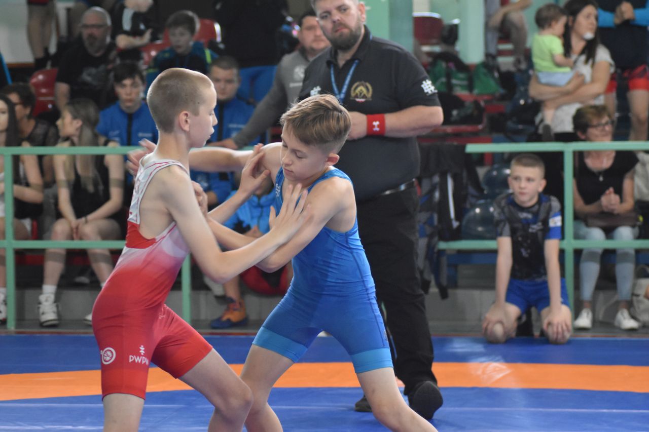 – Dzieci, tak jak te, normalnie na zasadach walczą dwa razy półtorej minuty. Młodzicy, kadeci już walczą dwa razy dwie minuty, starsi już walczą dwa razy trzy minuty. Także tu wszystko zależy od technicznych punktów, jak ta walka się potoczy. Oczywiście, kto położy na plecy, wygrywa walkę zdecydowanie lub przewagą techniczną, czyli musi być 8:0, czyli osiem punktów przewagi – mówi Krzysztof Grzybek, sędzia z klubu Siła Mysłowice.