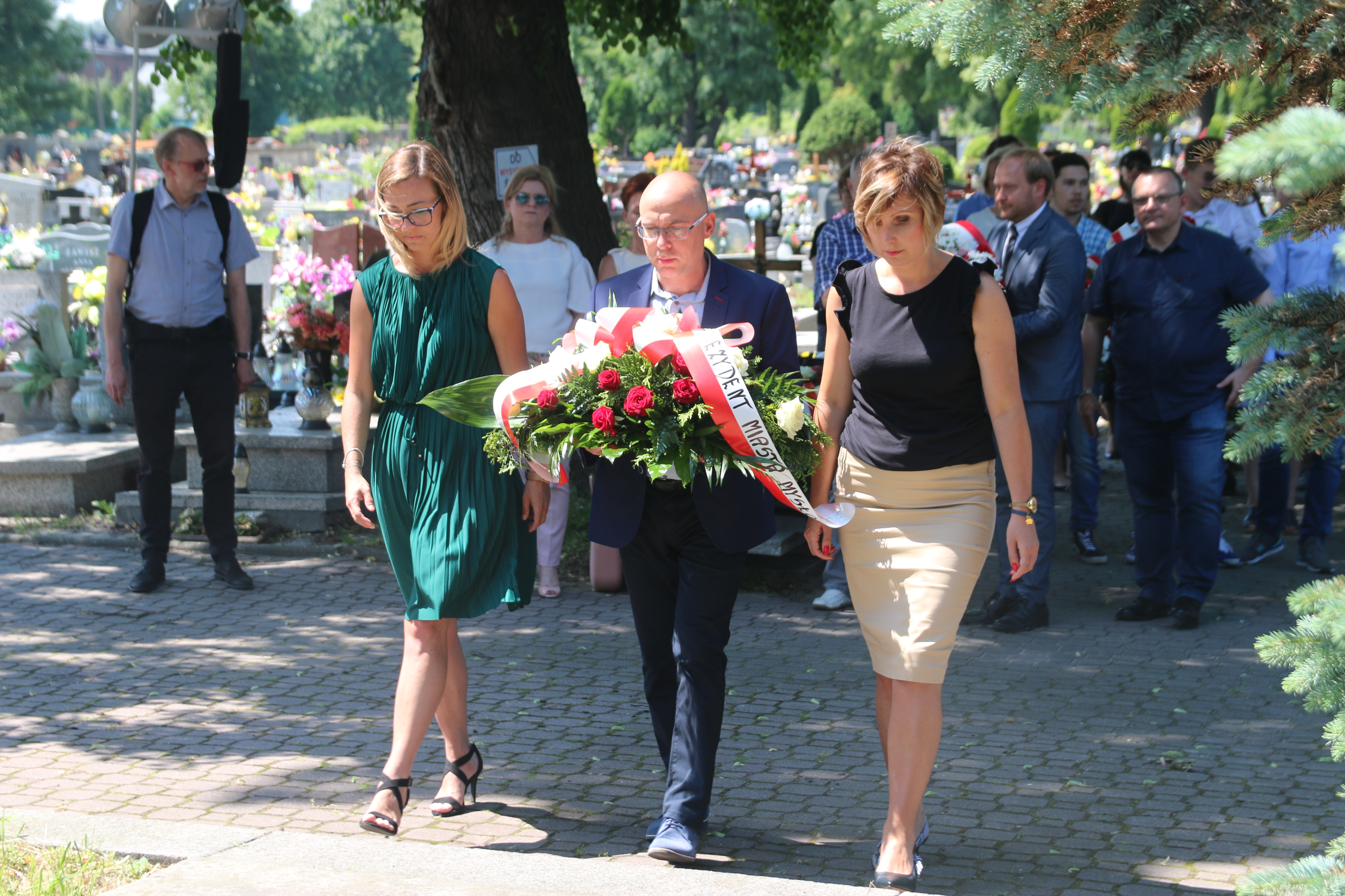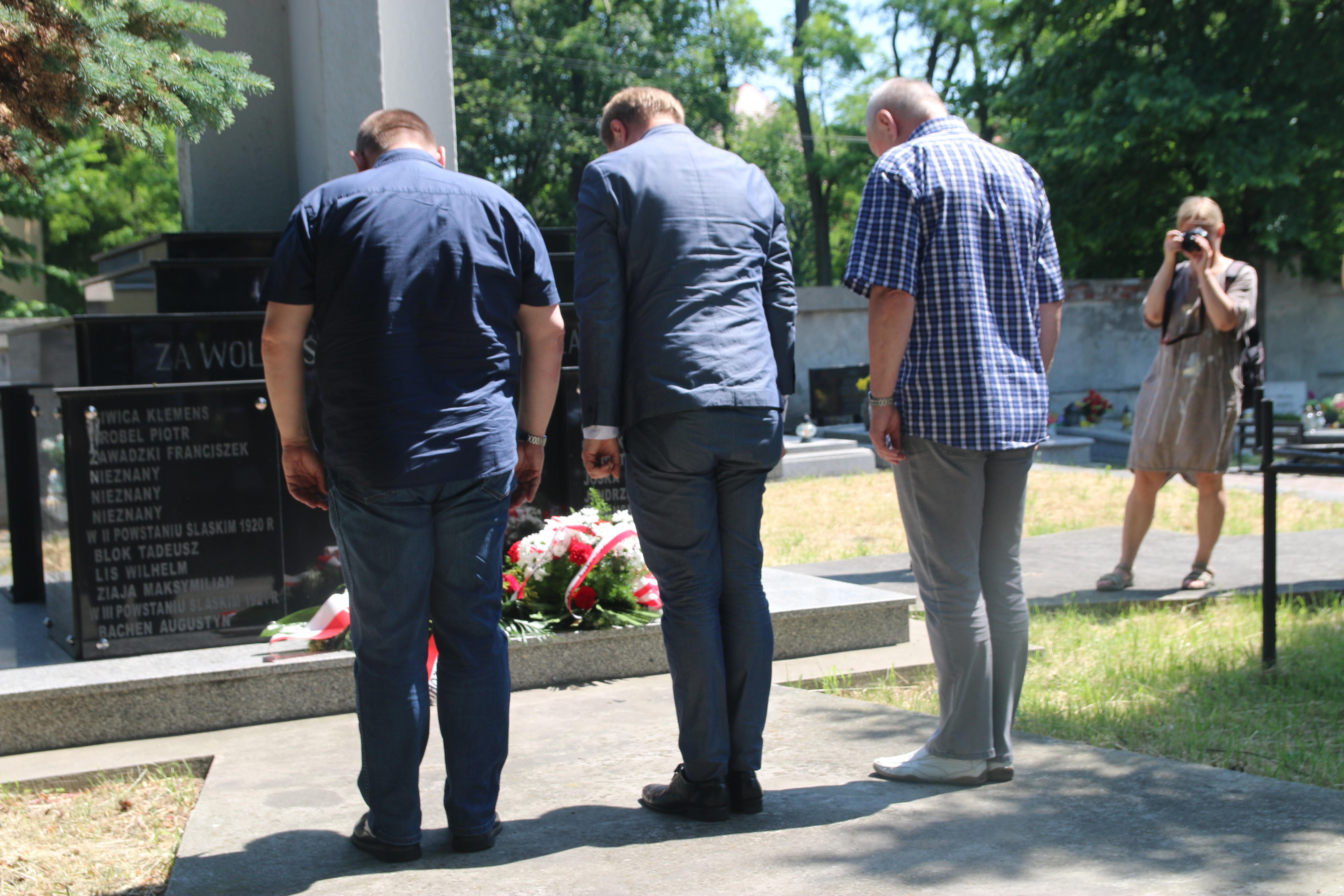 Następnie wszyscy goście, wraz z prezydentem Dariuszem Wójtowiczem, dyrektorem jego kancelarii Michałem Woźniczko, wiceprezydentem Wojciechem Chmielem i dyrektor II LO Eweliną Pokrywką, przeszli na cmentarz przy ul. Mikołowskiej. Przy pomniku powstańców śląskich złożyli kwiaty i znicze. Następnie pochód odwiedził odnowione przez IPN groby trzech powstańców: Benedykta Pawłowskiego, Józefa Strączka i Piotra Wróbla, na których również zostawili znicze i kwiaty.