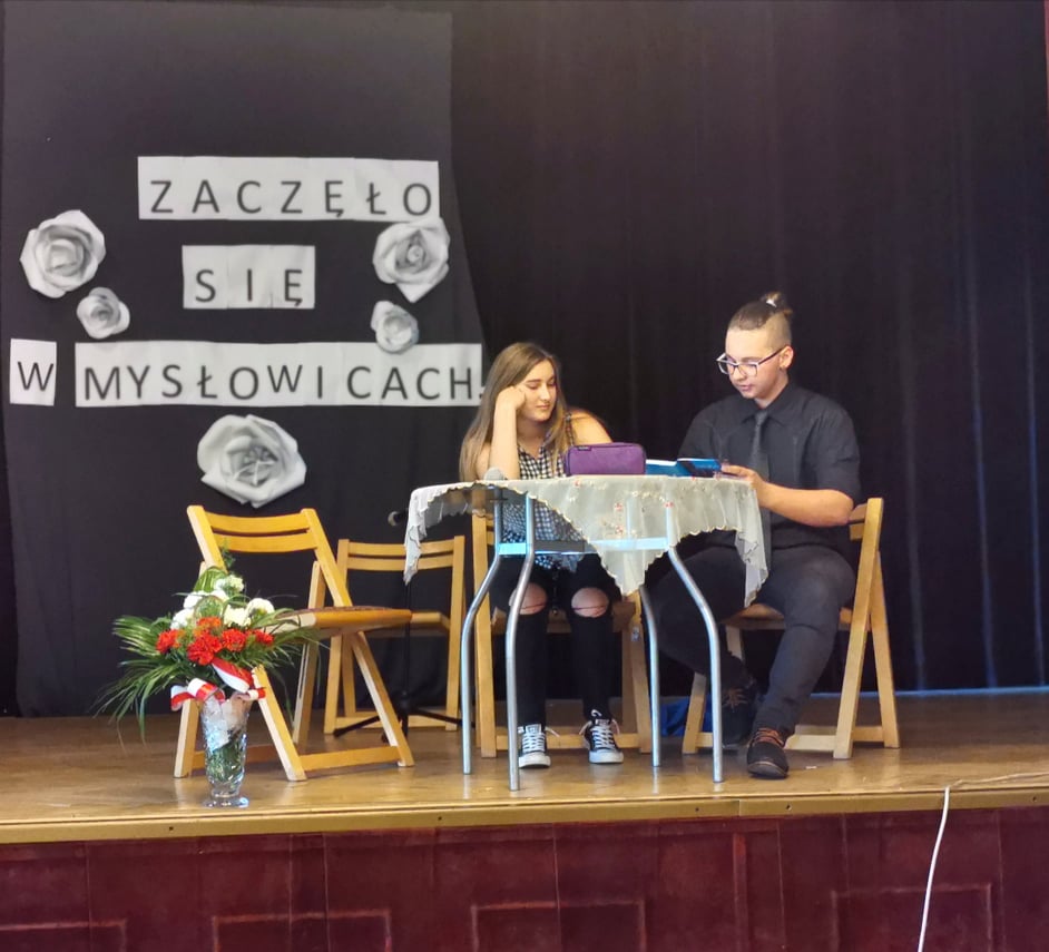 Jan Kwaśniewicz z Oddziałowego Biura Upamiętniania Walk i Męczeństwa Instytutu Pamięci Narodowej w Katowicach opowiedział zgromadzonym o wydarzeniach sprzed 100 lat. Dyrektor Adam Plackowski zaprezentował stworzony przez pracowników Muzeum Miasta Mysłowice film „Mysłowice 1919”. Na koniec szkolnych uroczystości uczniowie II LO wystąpili z programem artystycznym.
