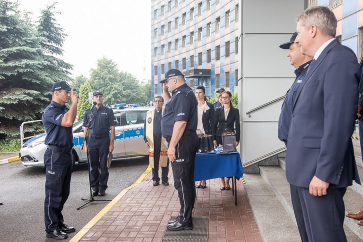 43 nowoczesne pojazdy hybrydowe przekazano we wtorek (12.06) w Komendzie Wojewódzkiej Policji w Katowicach. jeden z radiowozów zasili wyposażenie mysłowickich funkcjonariuszy.