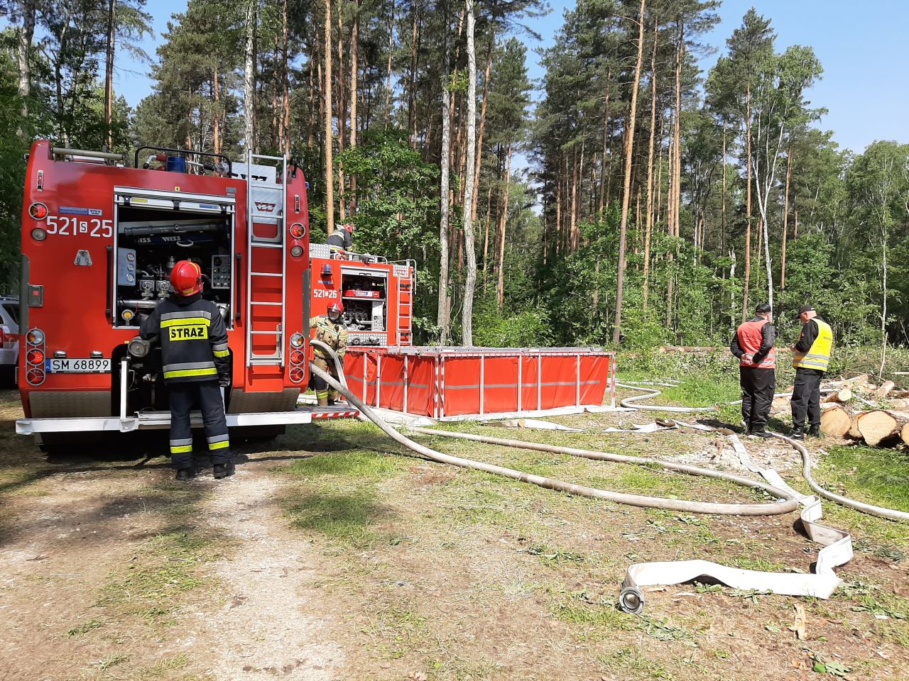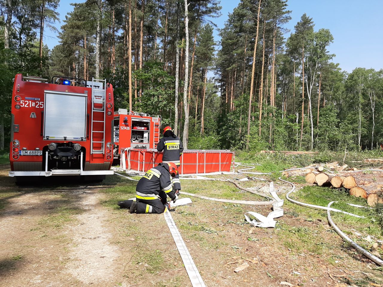W akcji uczestniczyli także przedstawiciele kolei, którzy musieli wstrzymać ruch pociągów i zabezpieczyć przejazd kolejowy w lesie, oraz leśnicy.