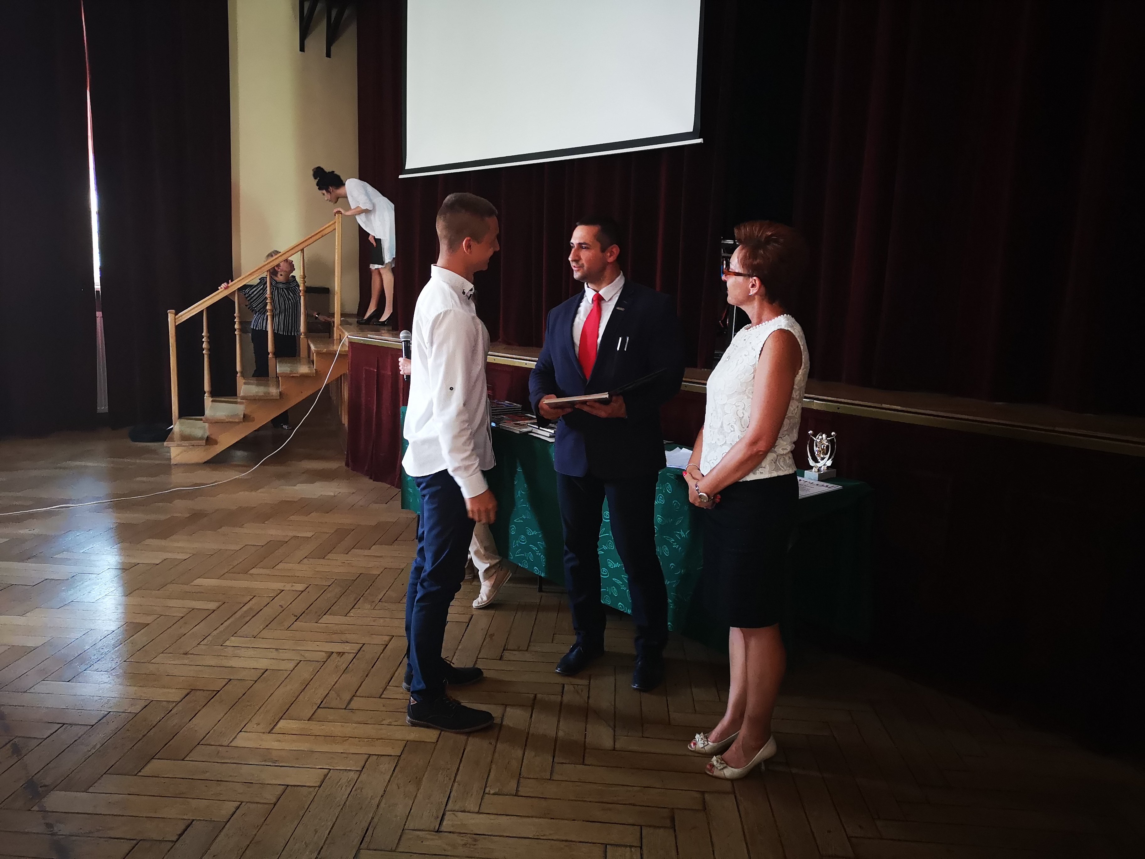 W tym roku odwiedziliśmy uczniów II Liceum Ogólnokształcącego im. Powstańców Śląskich, gdzie podczas uroczystej akademii wręczono dyplomy i nagrody książkowe za edukacyjne i sportowe sukcesy. Nagrody wręczał zaproszony na wydarzenie wiceprezydent Wojciech Chmiel, dyrektor liceum Ewelina Pokrywka oraz wychowawcy klas.