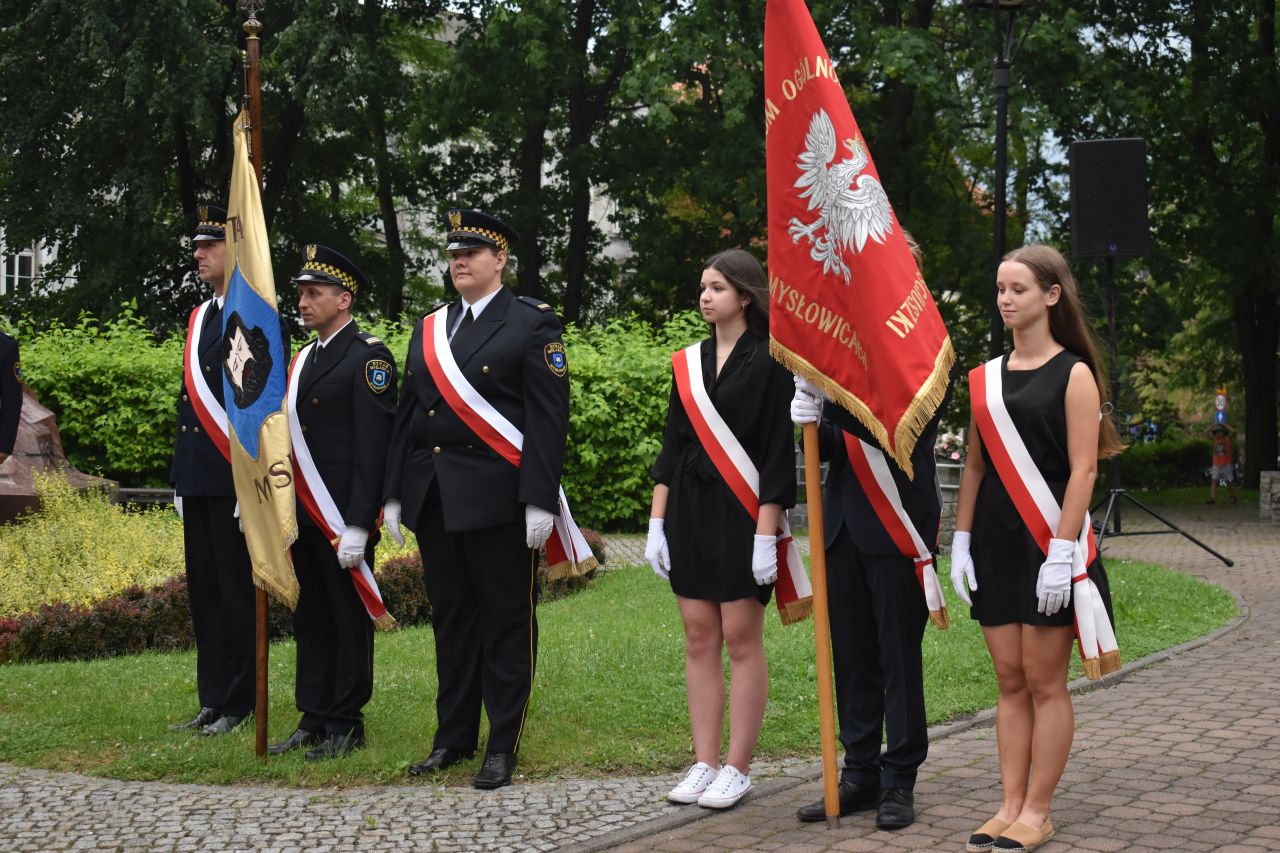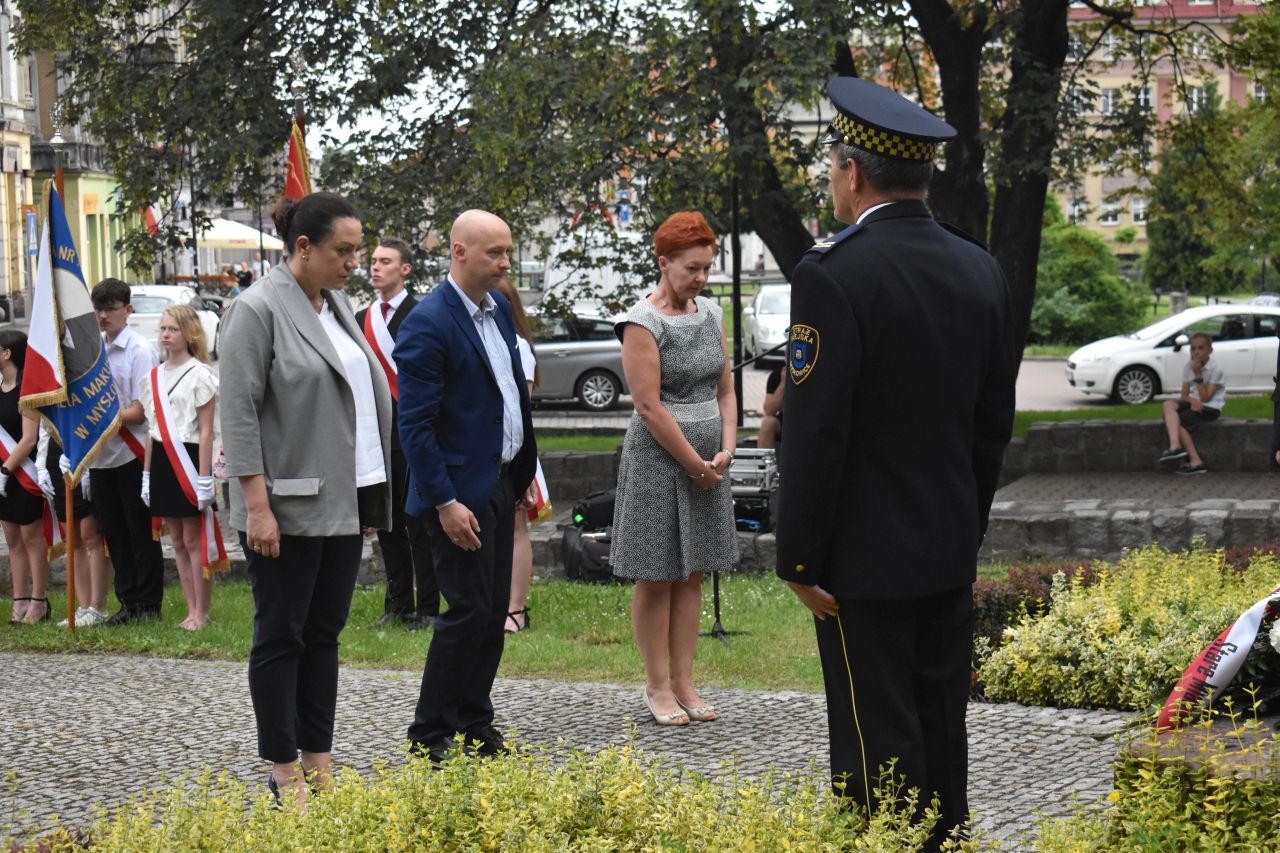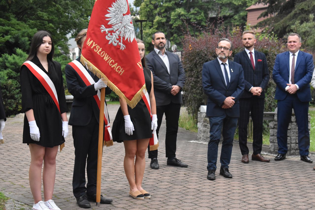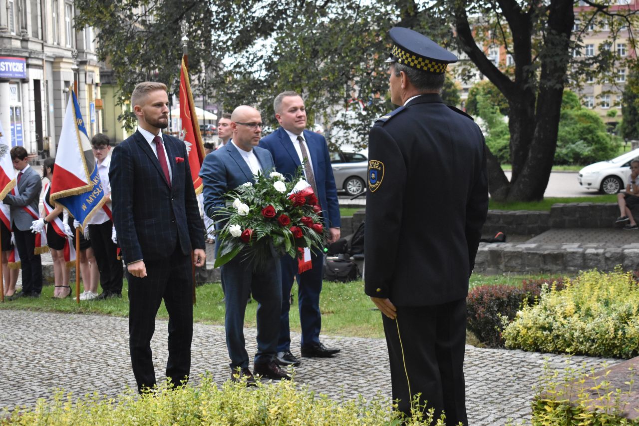 Z tej okazji na placu Wolności, pod pomnikiem kard. Augusta Hlonda, kwiaty złożyły delegacje władz miasta, radnych, dyrekcji mysłowickich szkół, Rady Dzielnicy Brzęczkowice-Słupna i Mysłowickiego Towarzystwa Historycznego im. Jacoba Lustiga. Obchody uświetniła obecność Ochotniczego Szwadronu 3. Pułku Ułanów Śląskich i uczniów mysłowickich szkół ze sztandarami. Honorową wartę pełniła straż miejska.