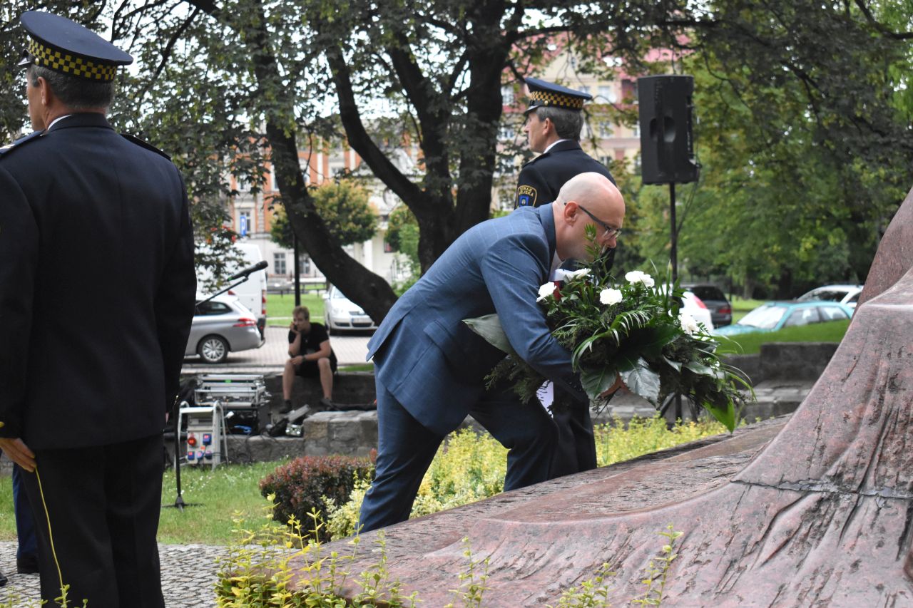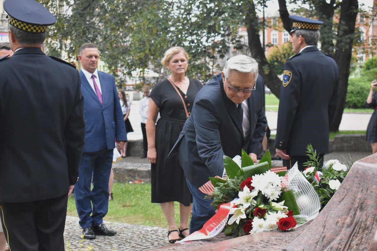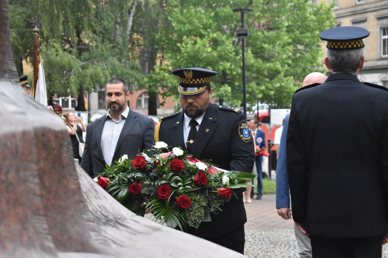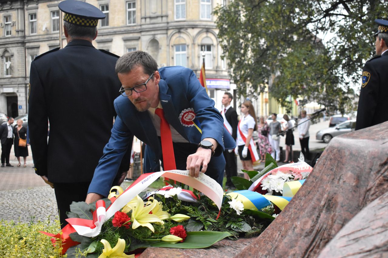 Z tej okazji na placu Wolności, pod pomnikiem kard. Augusta Hlonda, kwiaty złożyły delegacje władz miasta, radnych, dyrekcji mysłowickich szkół, Rady Dzielnicy Brzęczkowice-Słupna i Mysłowickiego Towarzystwa Historycznego im. Jacoba Lustiga. Obchody uświetniła obecność Ochotniczego Szwadronu 3. Pułku Ułanów Śląskich i uczniów mysłowickich szkół ze sztandarami. Honorową wartę pełniła straż miejska.