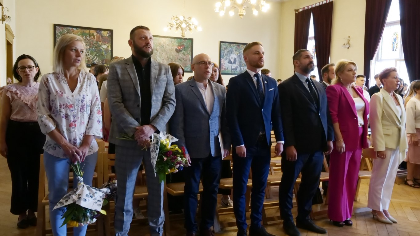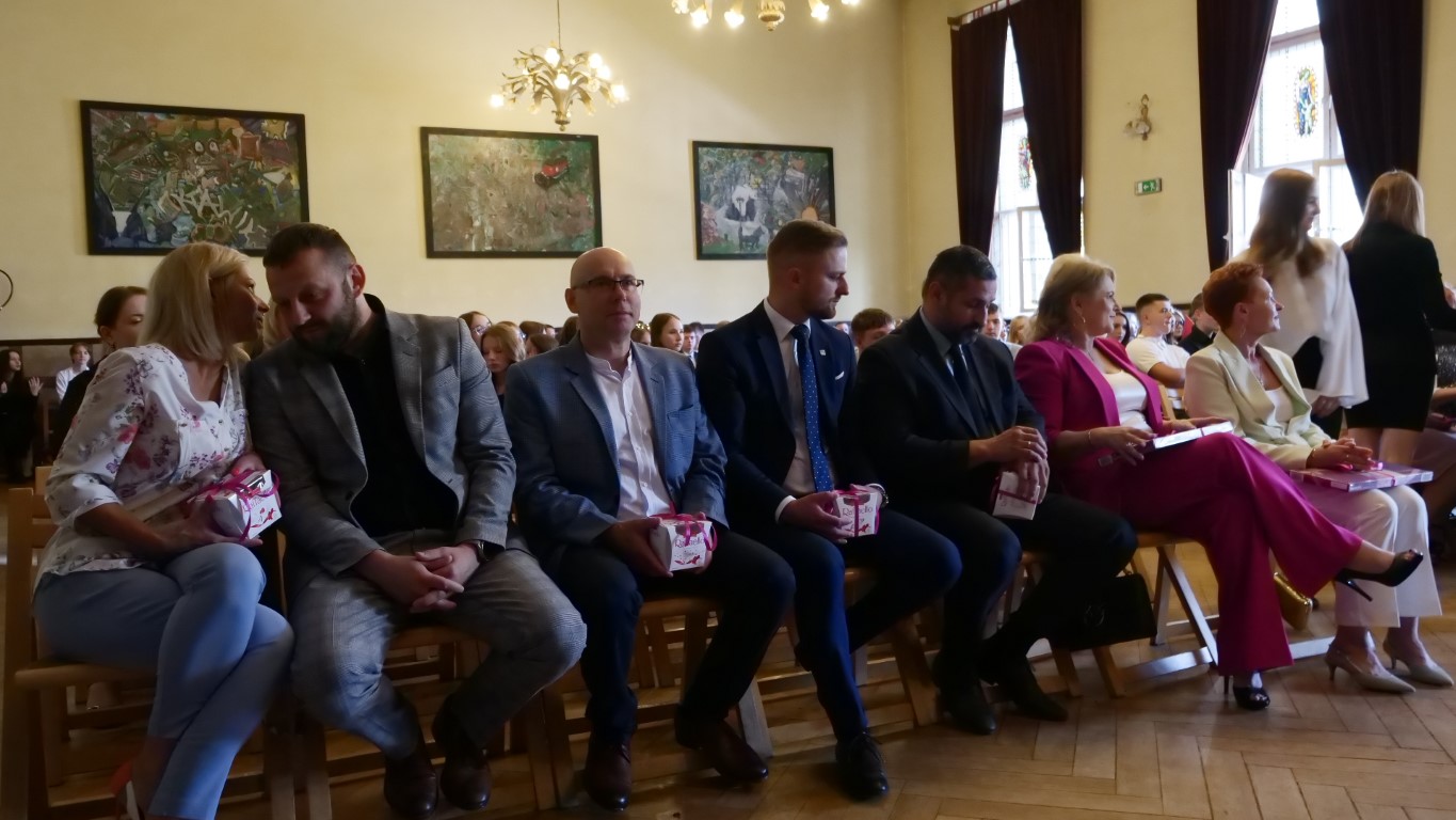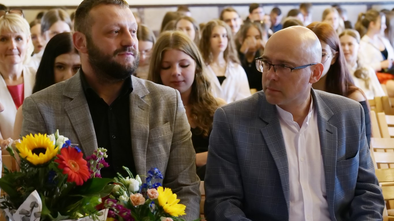 W uroczystościach w II LO uczniom towarzyszyli m.in.: prezydent Mysłowic Dariusz Wójtowicz oraz wiceprezydenci Wojciech Chmiel i Mateusz Targoś.