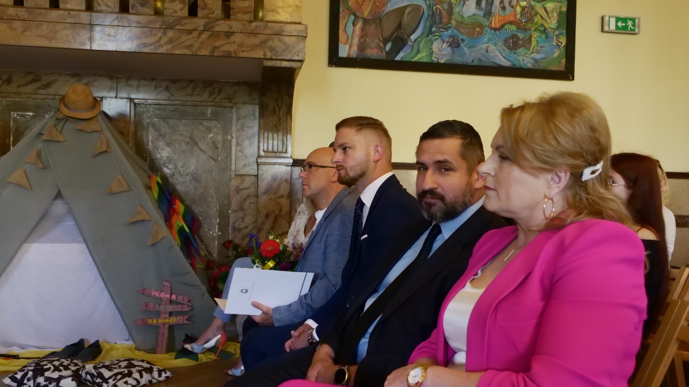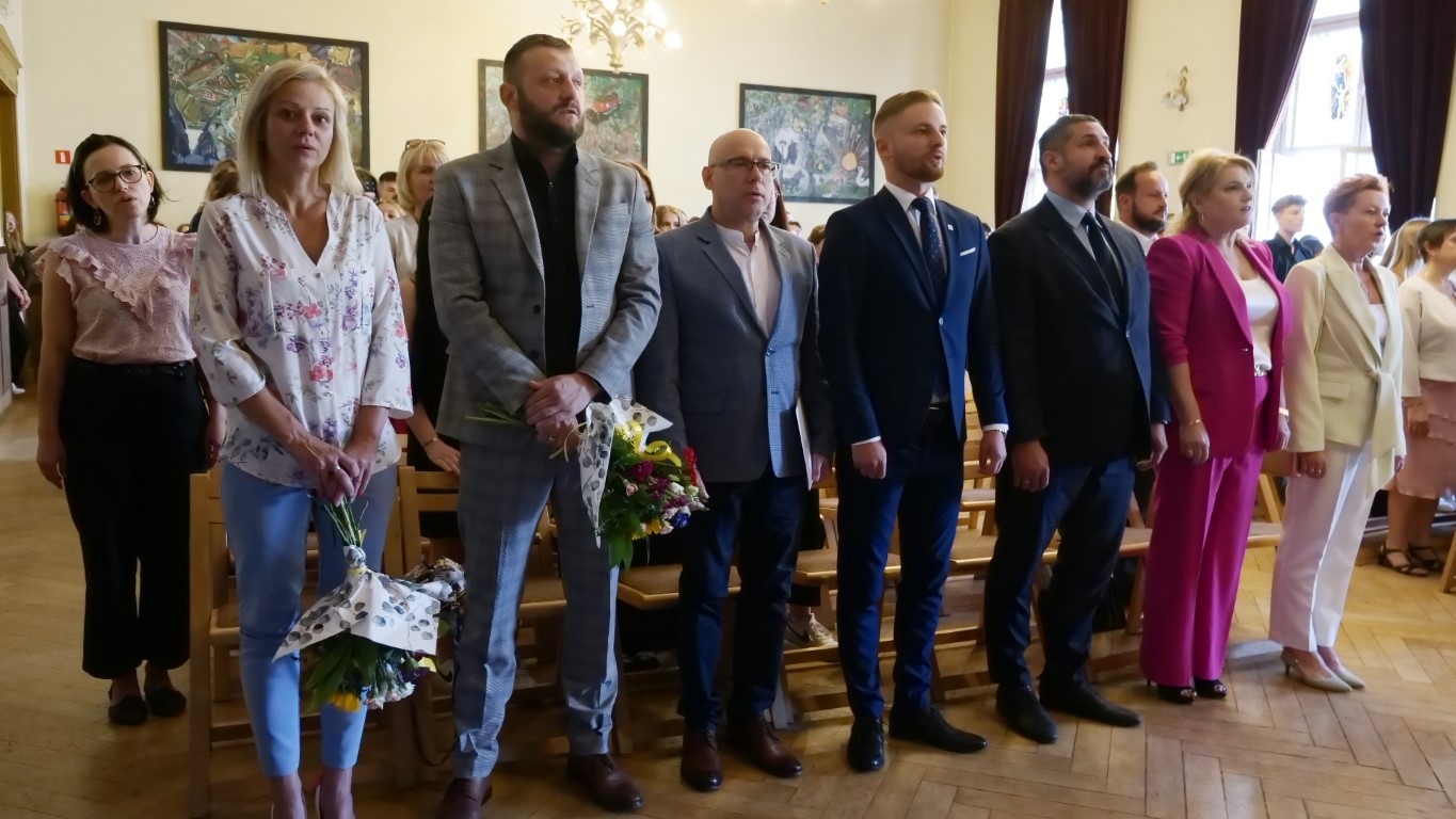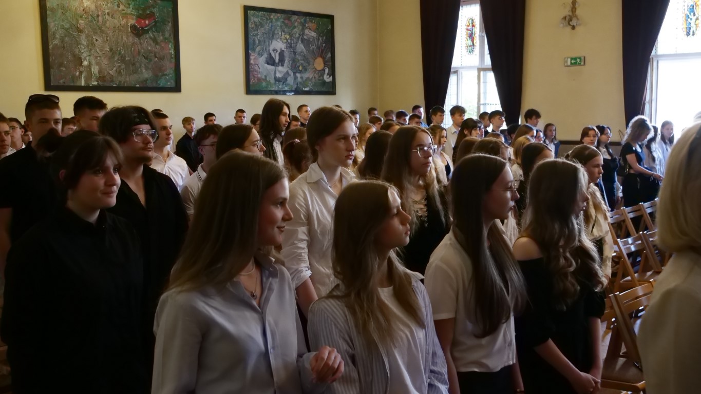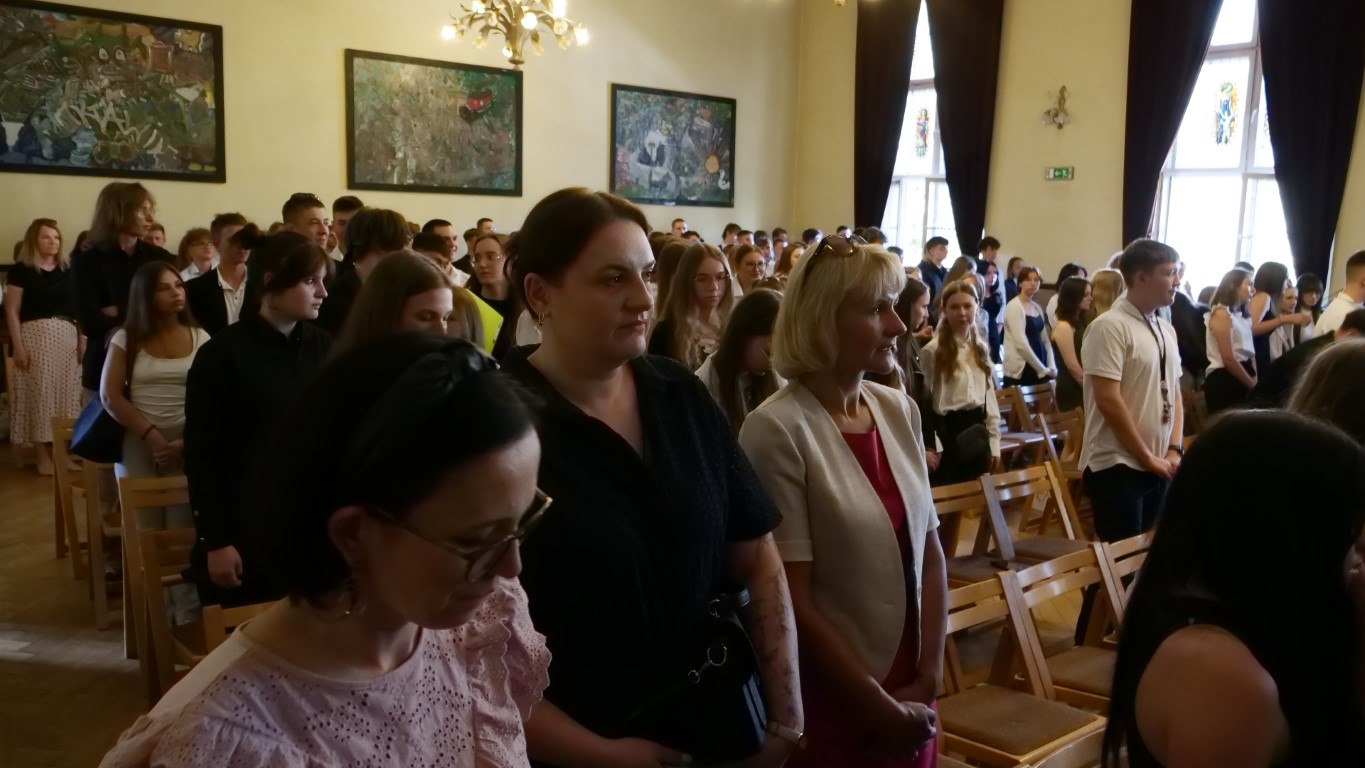 W uroczystościach w II LO uczniom towarzyszyli m.in.: prezydent Mysłowic Dariusz Wójtowicz oraz wiceprezydenci Wojciech Chmiel i Mateusz Targoś.