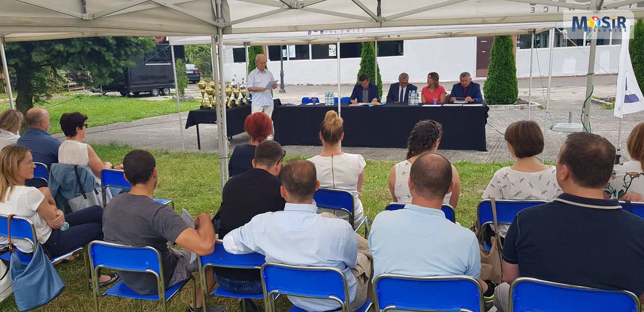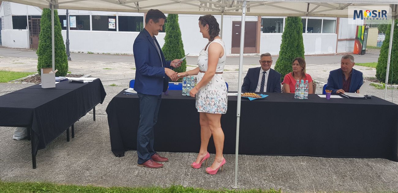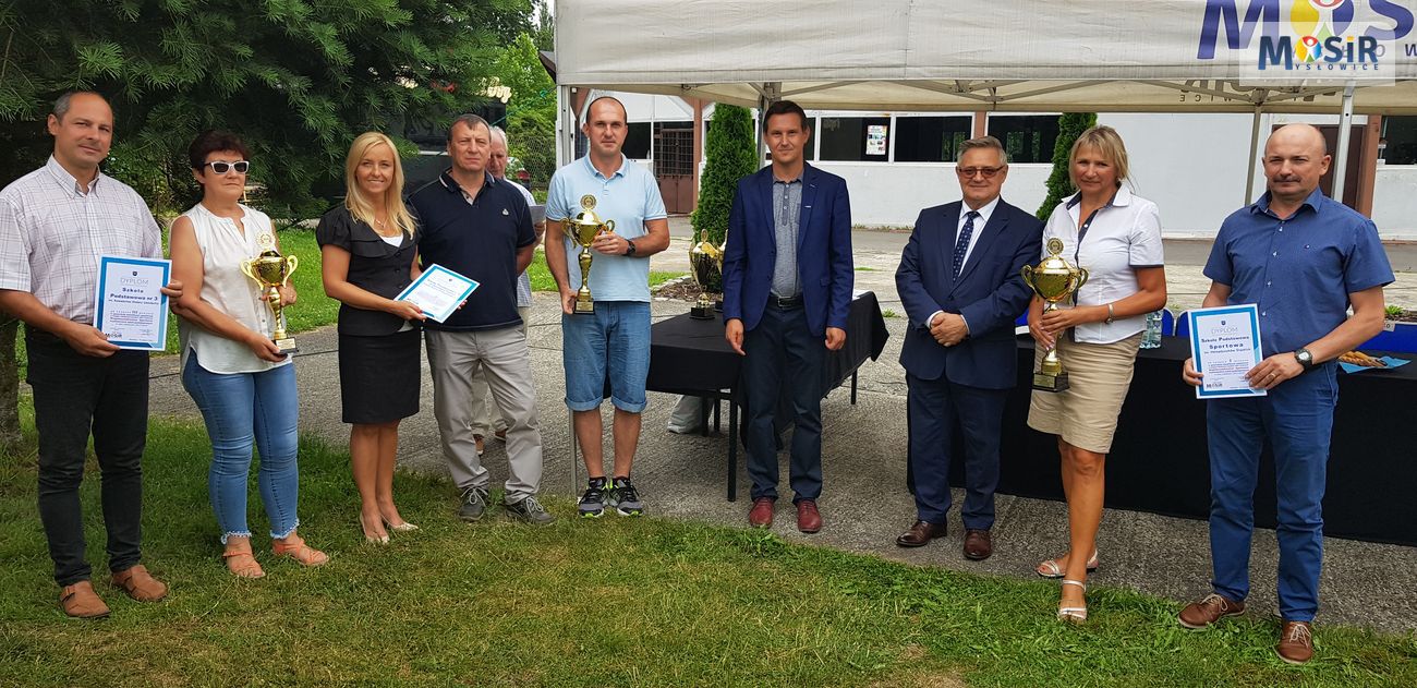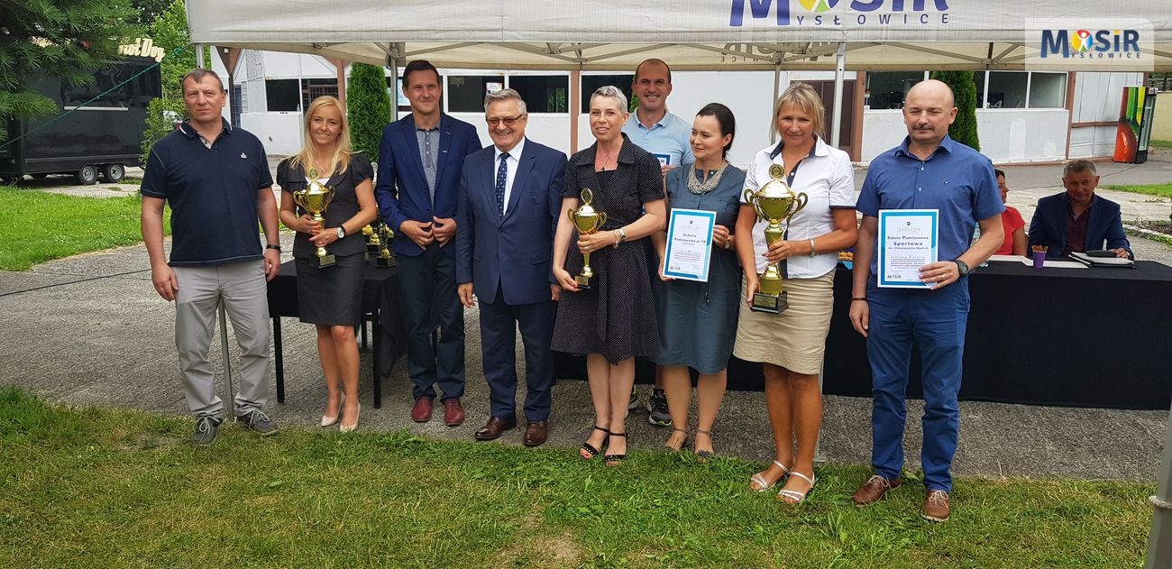 Pięć dni przed zakończeniem roku szkolnego 2017/2018, tj. 18 czerwca br., odbyła się uroczystość podsumowania sportowego roku szkolnego, podczas którego trzy najlepsze placówki szkolne każdej grupy i każdej kategorii – poprzez swoich Dyrektorów Szkół i nauczycieli wychowania fizycznego tych wyróżnionych placówek – odebrały gratulacje, dyplomy i puchary, które wręczali: Prezydent Miasta Mysłowice – Edward Lasok, Zastępca Dyrektora MOSiR – Paweł Gawęda, Rejonowy Organizator Sportu Szkolnego Śląskiego Szkolnego Związku Sportowego – Krzysztof Nowosielski oraz Inspektor Wydziału Edukacji UM Mysłowice – Aneta Stefanowicz.