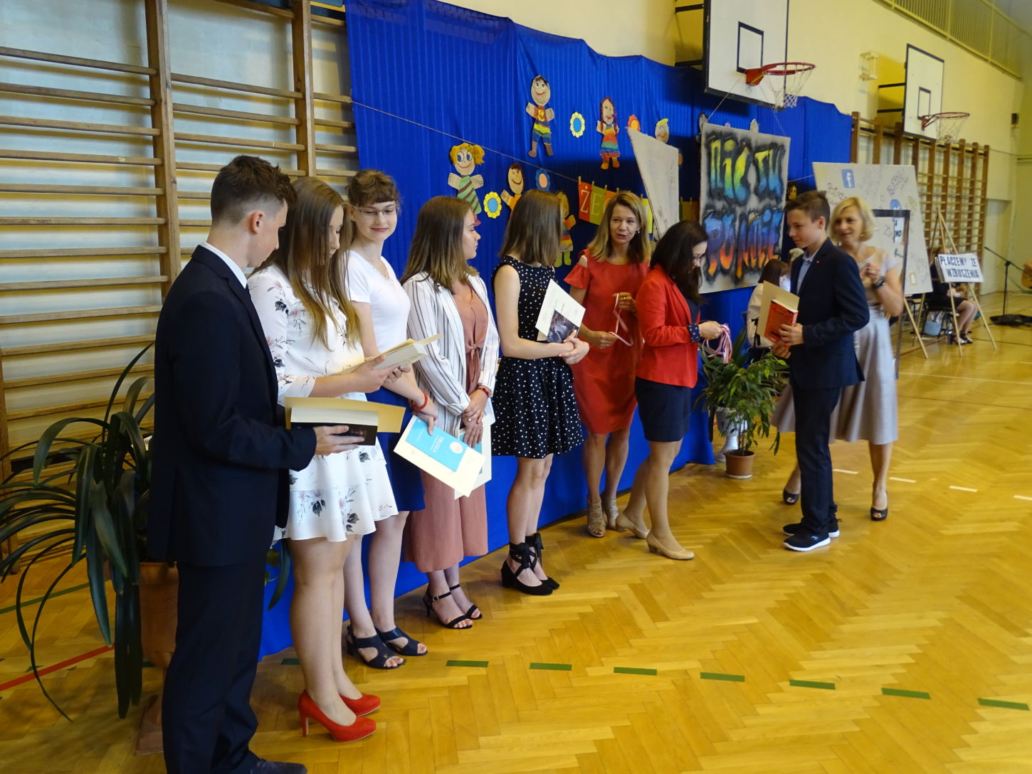 Podczas uroczystości, którą uświetnili swoim przybyciem zaproszeni goście, uczniowie otrzymali nagrody w różnych dziedzinach: w nauce, sporcie, wolontariacie. Uroczystość rozpoczęła się polonezem. Część artystyczną przygotowali uczniowie klas III. Na zakończenie dyrektor Małgorzata Matyszczak życzyła wszystkim zasłużonych, słonecznych i bezpiecznych wakacji!