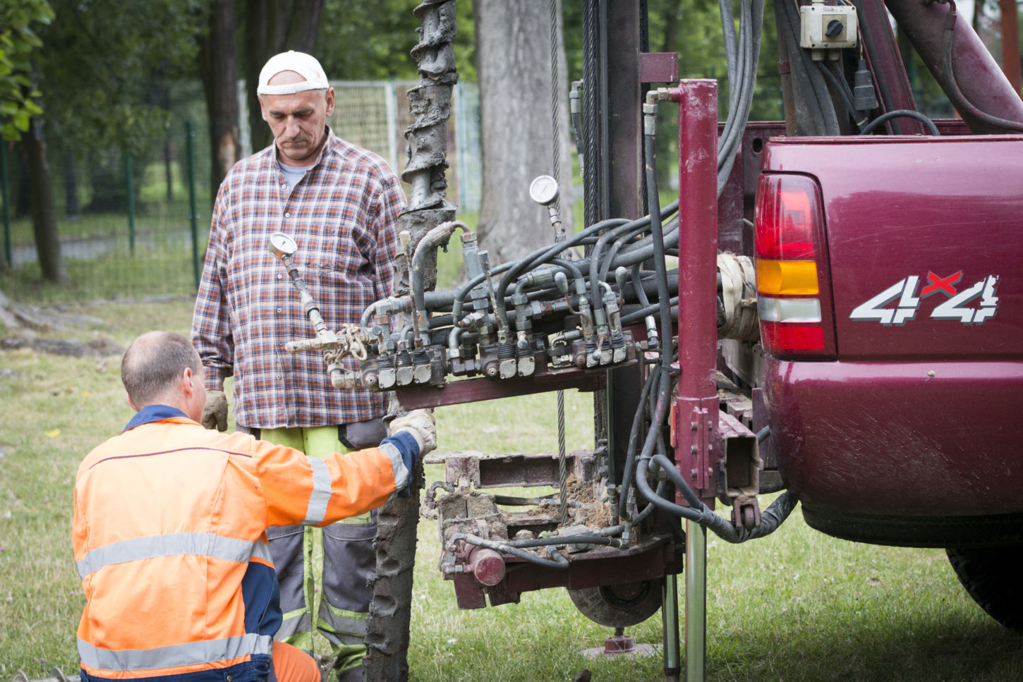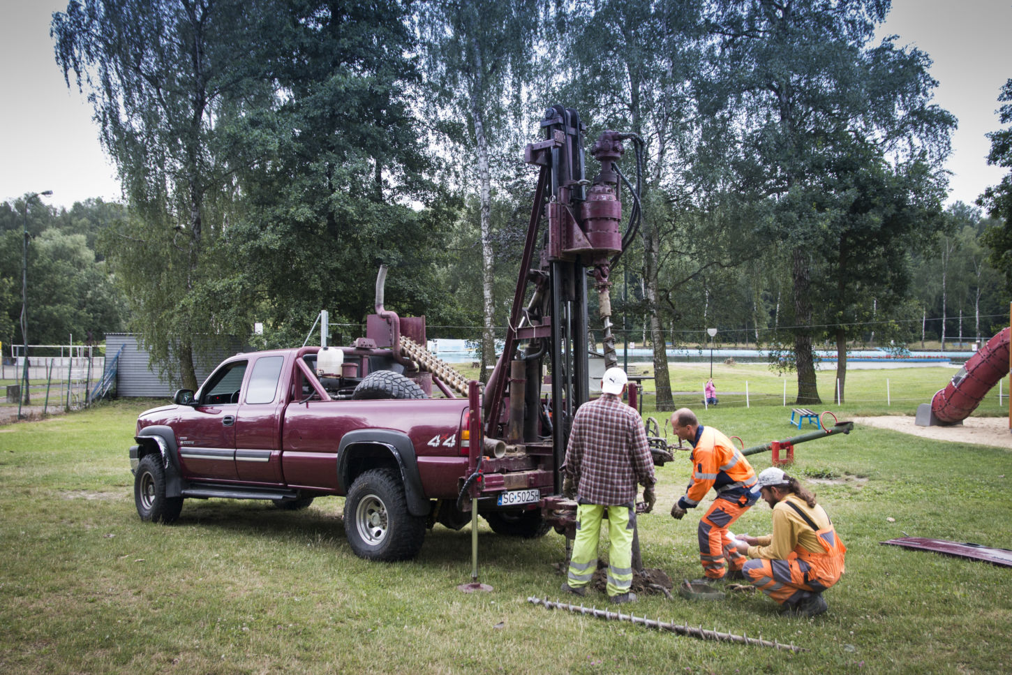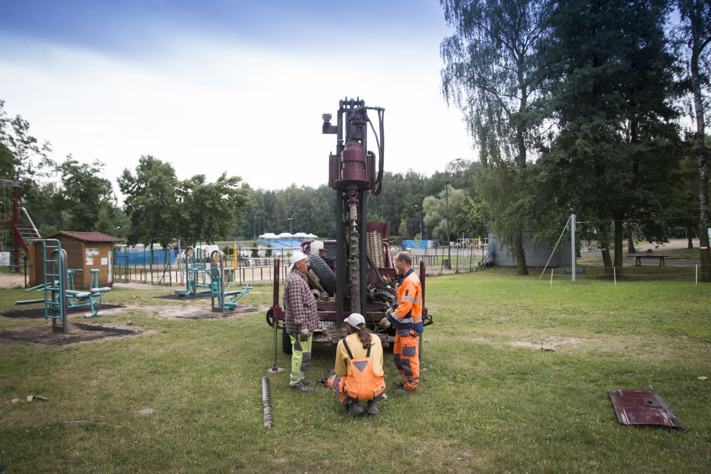 W czerwcu MOSiR podpisał umowę z firmą Plus8.pl na wykonanie Programu Funkcjonalno-Użytkowego, który jest niezbędny do przygotowania projektu technicznego pływalni. Jednym z elementów przygotowania programu użytkowego jest badanie geologiczne terenu w Parku Słupna. Odwierty geotechniczne, jakie wykonano na terenie parku, informują o nośności gruntów i pozwalają podjąć decyzje np. w sprawie doboru odpowiednich fundamentów.
