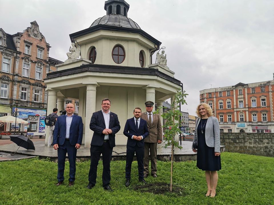 Pomagali mu wiceminister klimatu Jacek Ozdoba, wicemarszałek województwa śląskiego Beata Białowąs oraz przedstawiciel Nadleśnictwa Katowice, które podarowało miastu jeden ze stu dębów poświęconych przez papieża Franciszka na 100-lecie niepodległej Polski.