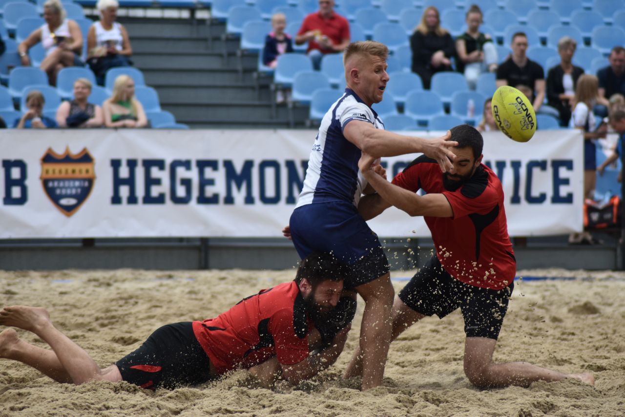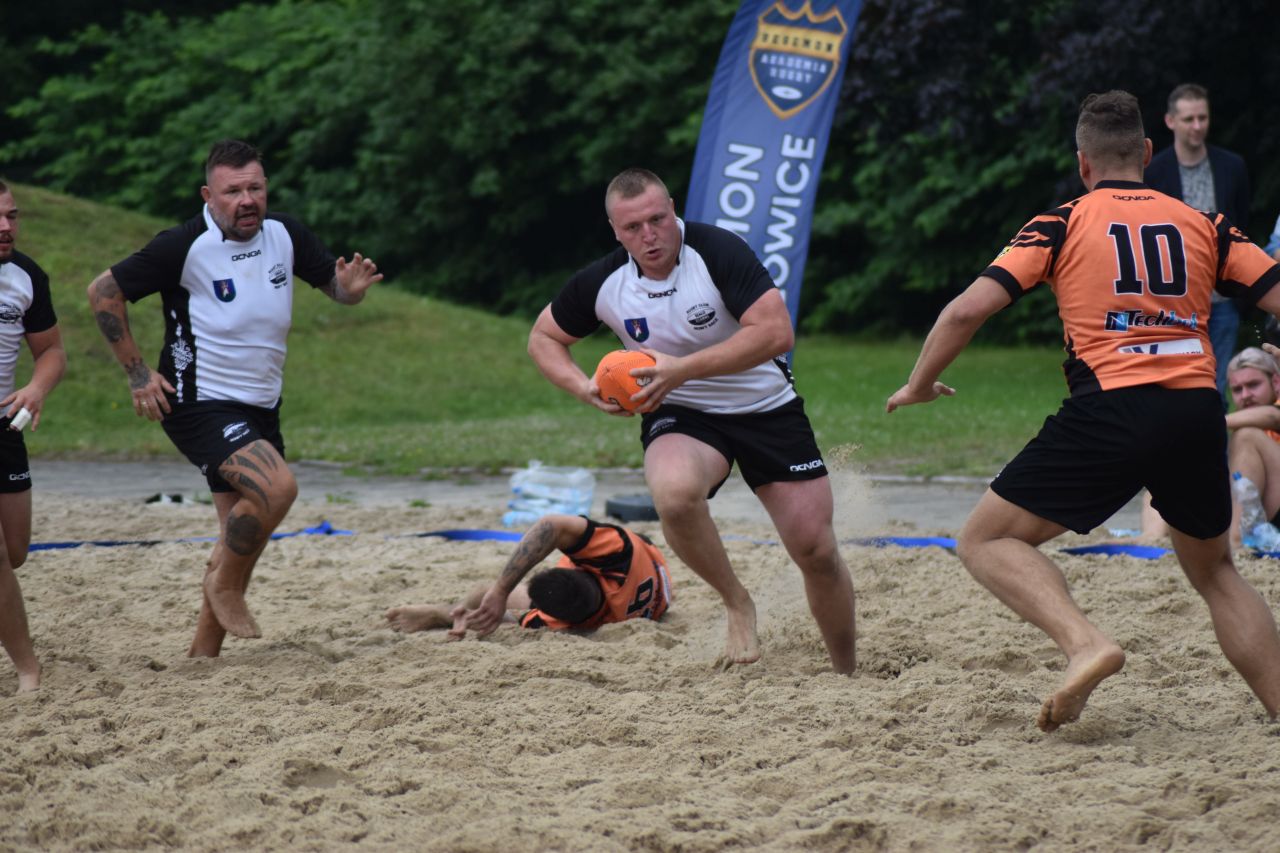 Podczas Festiwalu Sportów Plażowych nie mogło zabraknąć również rugby, które za sprawą zawodników Hegemona Mysłowice rozwija się od kilku lat w naszym mieście. Choć rugby plażowe to uproszczona wersja rugby, to jednak każdy krok na piasku kosztuje niemało wysiłku. Jak hegemoni podsumowują plażową wersję rugby?