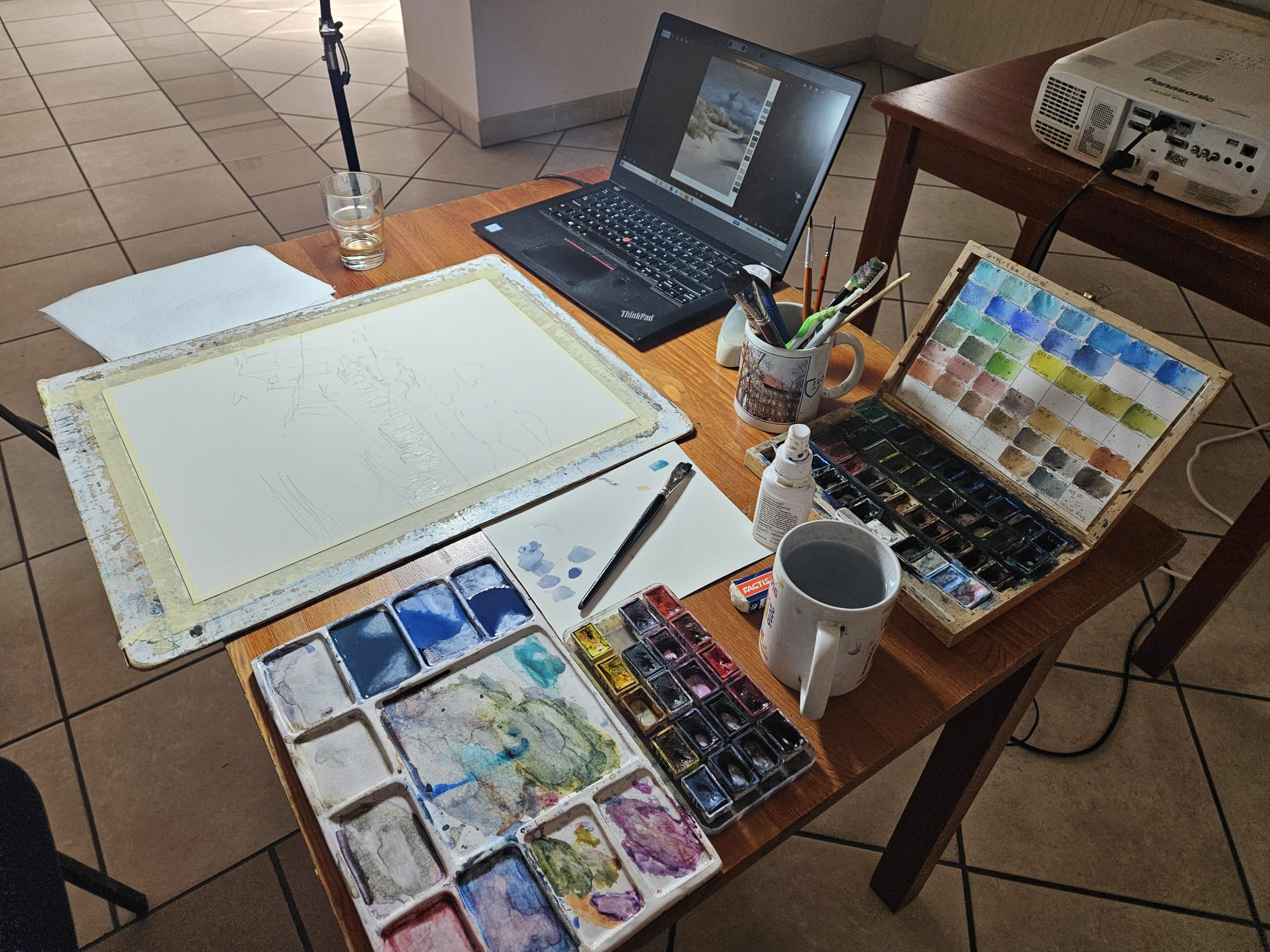 Wystawa, której wernisaż odbył się 4 lipca 2025 roku, potrwa aż do 7 września. W jej ramach można podziwiać prace wykonane techniką akwareli – medium wyjątkowo ulotnym, które Gruchlik opanował z niezwykłą swobodą i ekspresją. Twórca prowadzi widza przez świat portretów, krajobrazów oraz detali architektonicznych, ukazując piękno rzeczywistości zanurzonej w wodnej estetyce farby i światła.