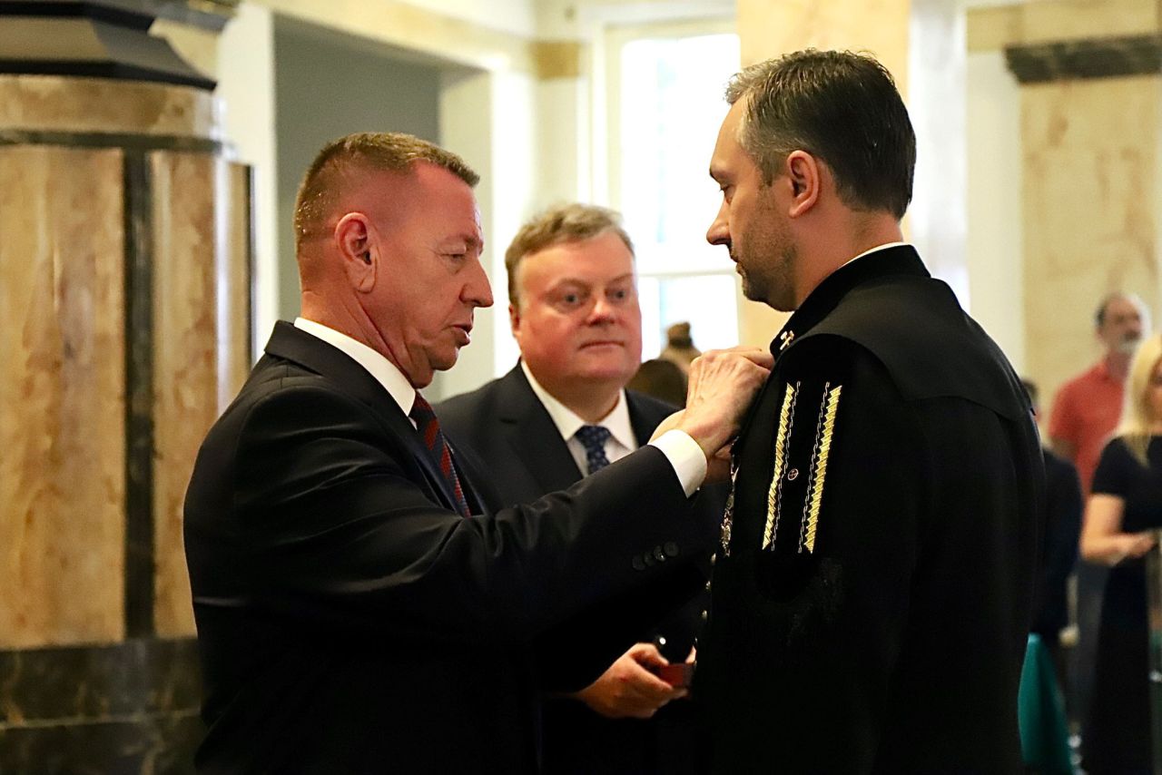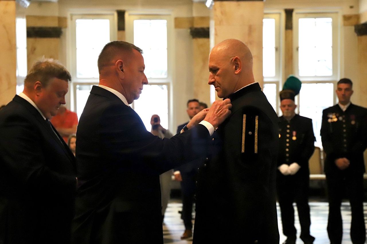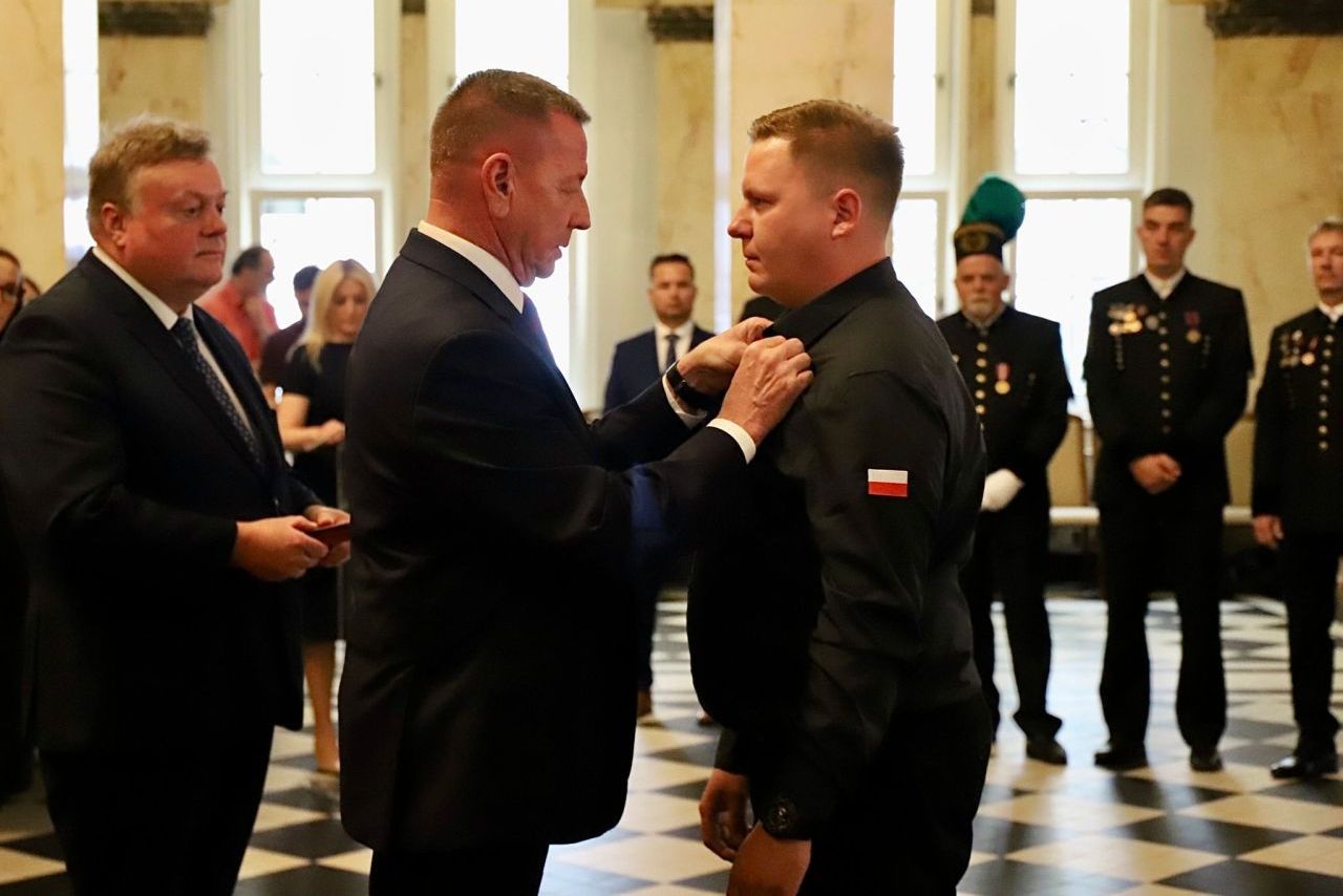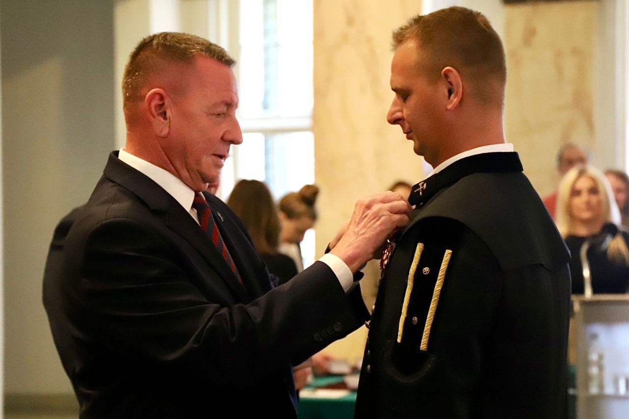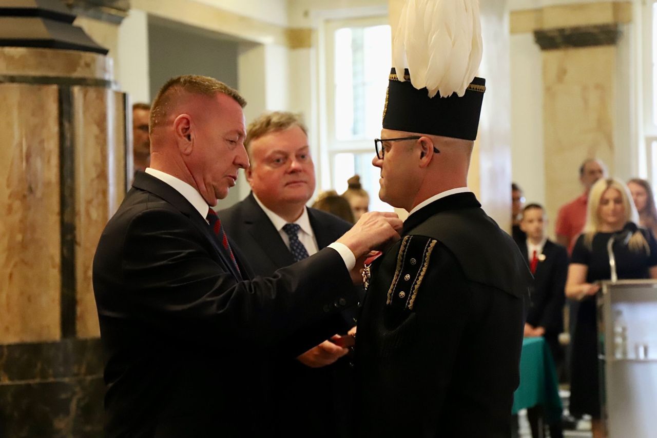 Uroczystość odznaczenia złotymi, srebrnymi i brązowymi Krzyżami Zasługi odbyła się w miniony czwartek 6 lipca w gmachu Śląskiego Urzędu Wojewódzkiego w Katowicach. Ratownicy górniczy z Polskiej Grupy Górniczej i Jastrzębskiej Spółki Węglowej zostali uhonorowani za działania w Turcji, gdzie polecieli, by pomagać po trzęsieniu ziemi, oraz za akcje ratownicze w kopalniach Zofiówka w Jastrzębiu-Zdroju i Pniówek w Pawłowicach w 2022 r. W sumie 18 osób zostało uhonorowanych przez prezydenta Andrzeja Dudę za zasługi dla ratownictwa górniczego oraz ofiarne niesienie pomocy ofiarom lutowego trzęsienia ziemi w Turcji. Byli to Grzegorz Butlak, Daniel Bernacki, Łukasz Jarawka, Szymon Lukasek, Tomasz Opaszowski, Adrian Ostrowski, Dawid Paździor, Piotr Sobota, Roman Stasis i Dawid Śliwiński z PGG oraz Grzegorz Szpejcher, Leszek Modzelewski, Tomasz Ćmiel, Tomasz Kuś, Sebastian Leśnik, Marcin Maślanka, Mariusz Mierzwa i Arkadiusz Styn z JSW.