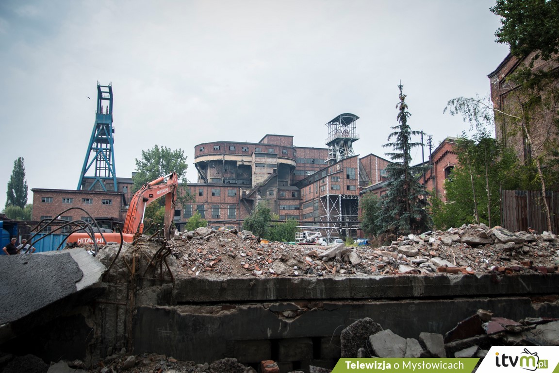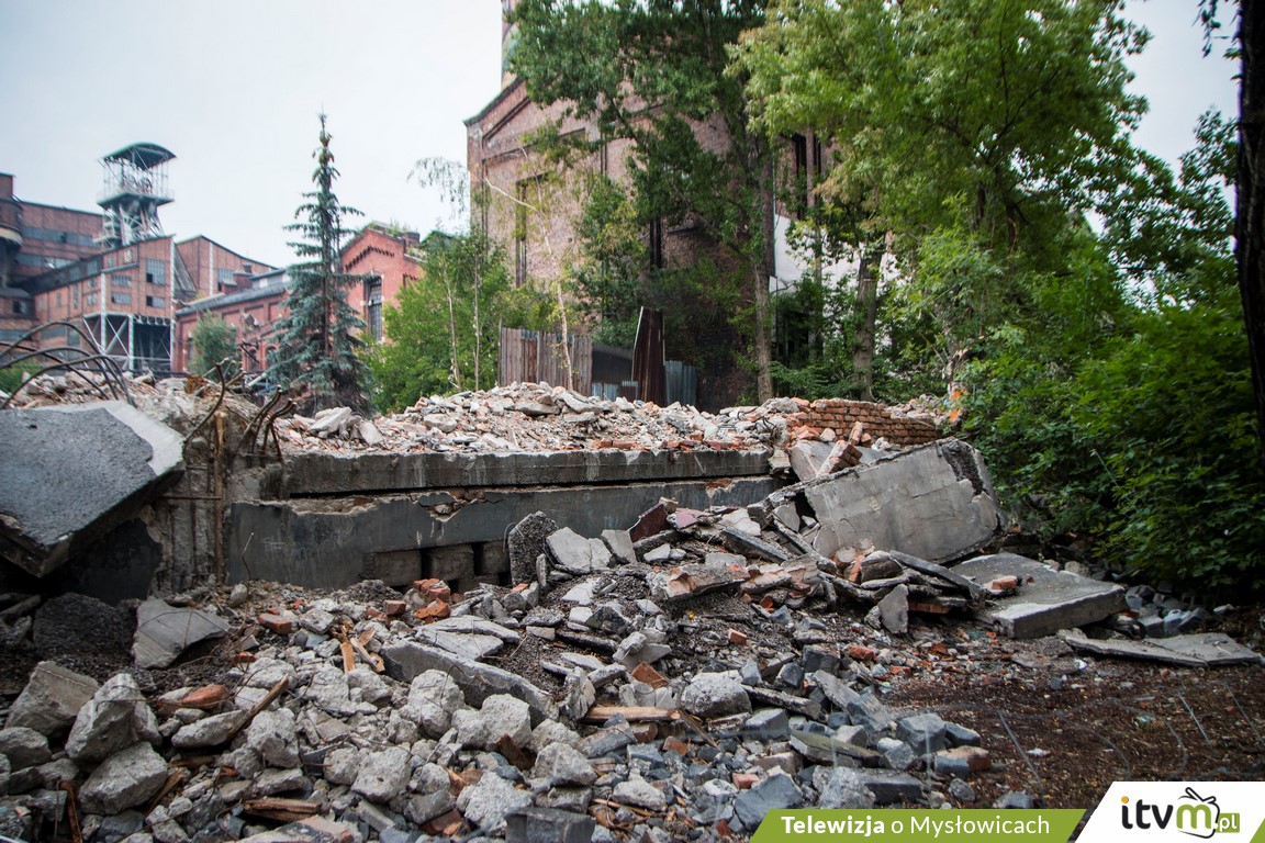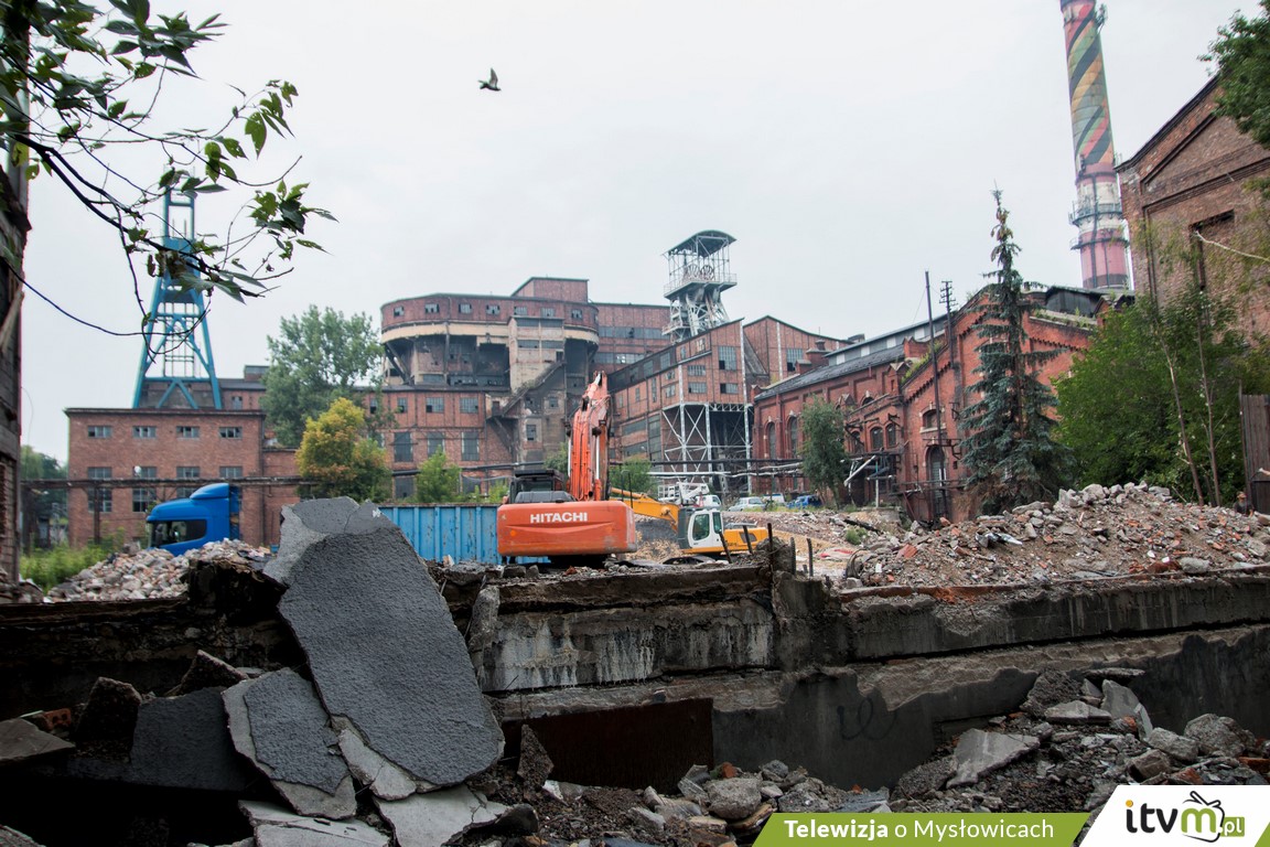 Trwa wyburzanie zabudowań z terenu byłej KWK „Mysłowice”. Buldożery już zrównały z ziemią m.in. basen przy ulicy Świerczyny, magazyn główny i odzieżowy. Prowadzone przez Spółkę Restrukturyzacji Kopalń – właściciela pokopalnianych terenów – prace rozbiórkowe mają trwać do końca przyszłego roku. Wyburzenia mają uniknąć najstarsze, zabytkowe budynki oraz wieża szybu.