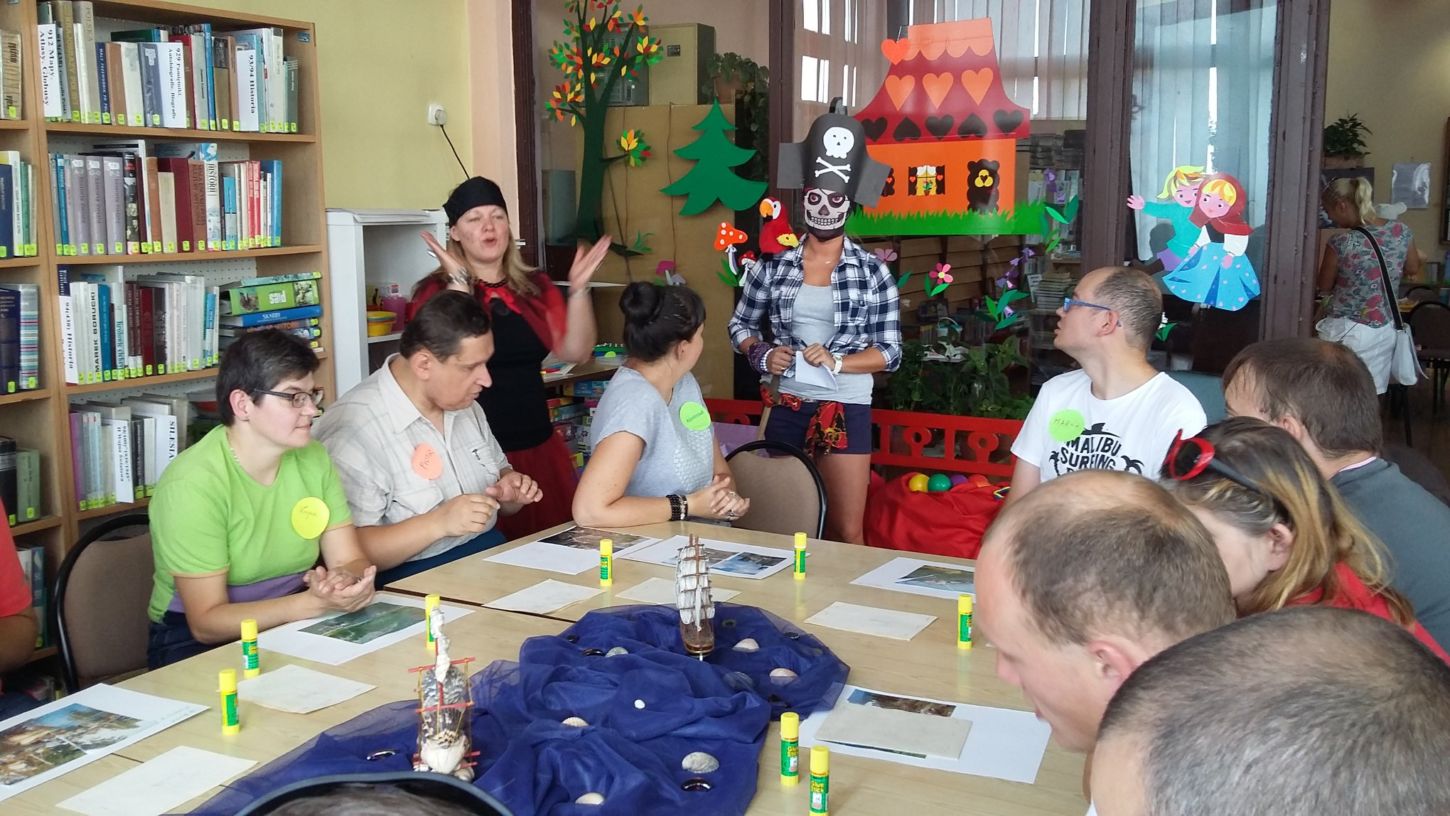 Podczas zajęć czytano zgadywanki, rymowanki, a każdy z uczestników miał za zadanie ułożyć krajobraz z puzzli i stworzyć wakacyjny kolorowy obrazek, który zabrał ze sobą na pamiątkę. Nie zabrakło wesołych zabaw ruchowych przy muzyce, a gościem specjalnym był pirat z gadającą papugą na ramieniu. Papuga, jak to papuga, powtórzyła każde słowo, które wypowiedziano do niej na sali. Ciekawe i wesołe zajęcia były dla wielu uczestników jedyną formą podróży wakacyjnej.