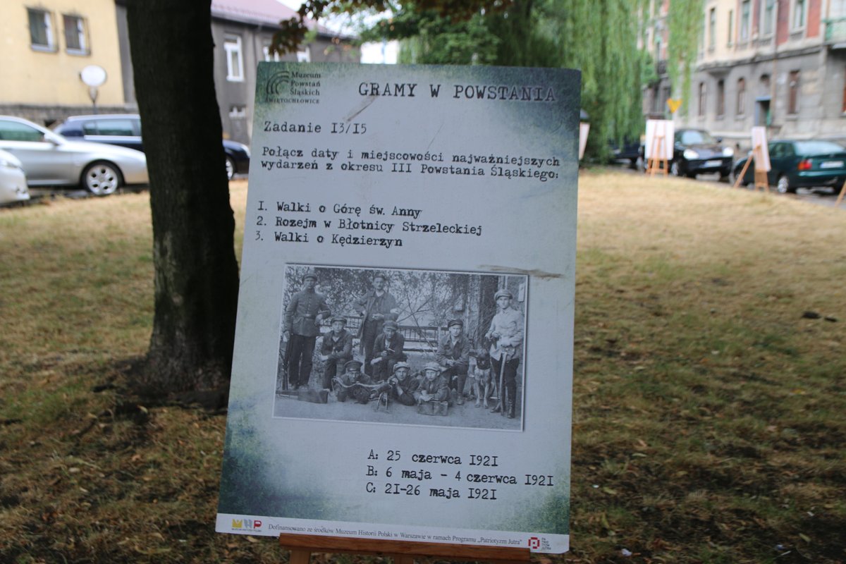 W niedzielne popołudnie 14 lipca na pl. Mieroszewskich stanęły tablice pełne pytań dotyczących powstań śląskich. Przechadzali się między nimi mysłowiczanie, którzy przyszli wykazać się historyczną wiedzą i powalczyć o nagrody. A wszystko to za sprawą gry plenerowej „Gramy w powstania”.