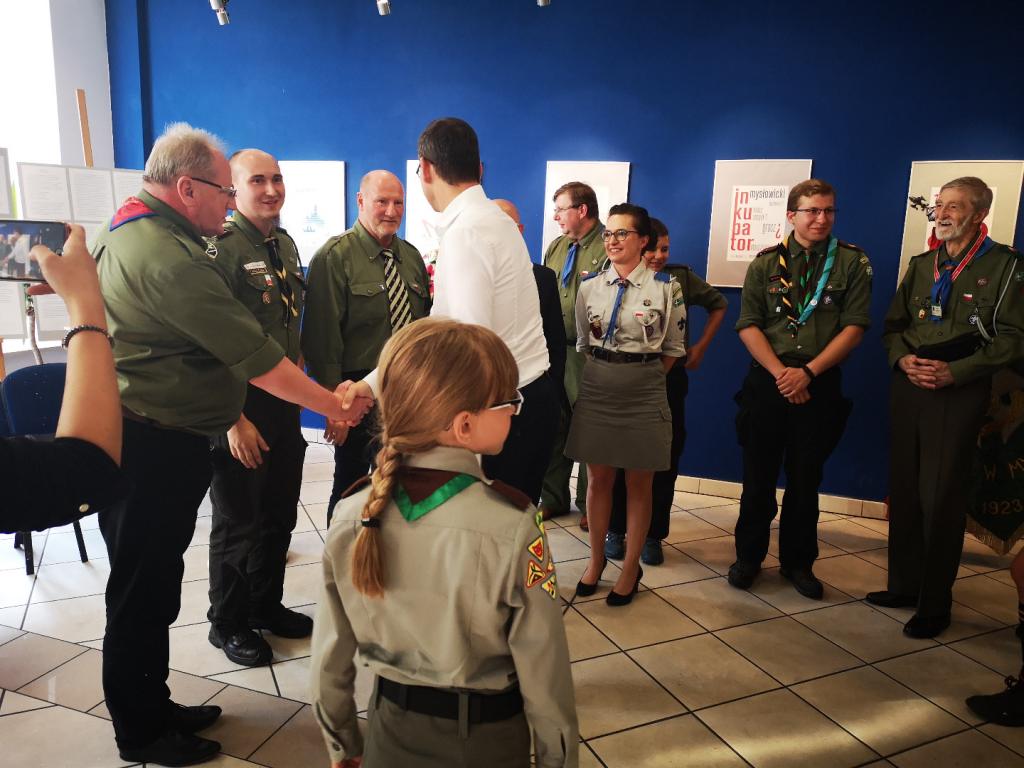 W niedzielę 20 lipca premier RP Mateusz Morawiecki wraz z władzami wojewódzkimi: Wojewodą Śląskim Jarosławem Wieczorkiem oraz Marszałkiem Województwa Śląskiego Jakubem Chełstowskim spotkali się z mysłowickimi harcerzami oraz przedstawicielami samorządu. Wydarzenie odbyło się w Mysłowickim Ośrodku Kultury przy ulicy Grunwaldzkiej. Przywitali ich prezydent Dariusz Wójtowicz oraz komendant Hufca ZHP Marzena Drobiec.