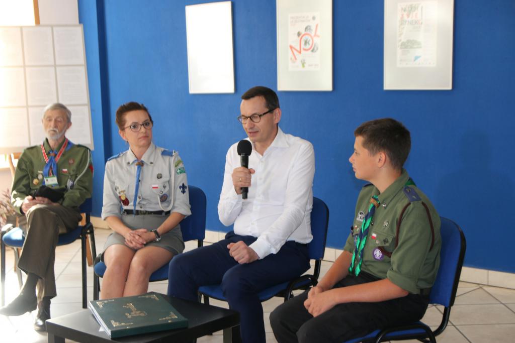 Na zakończenie spotkania premier podziękował harcerzom, że kontynuują i rozwijają piękne harcerskie tradycje.