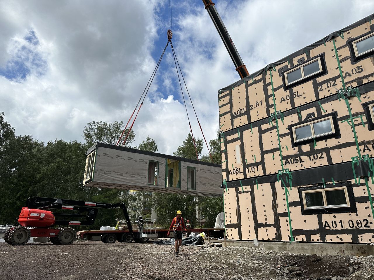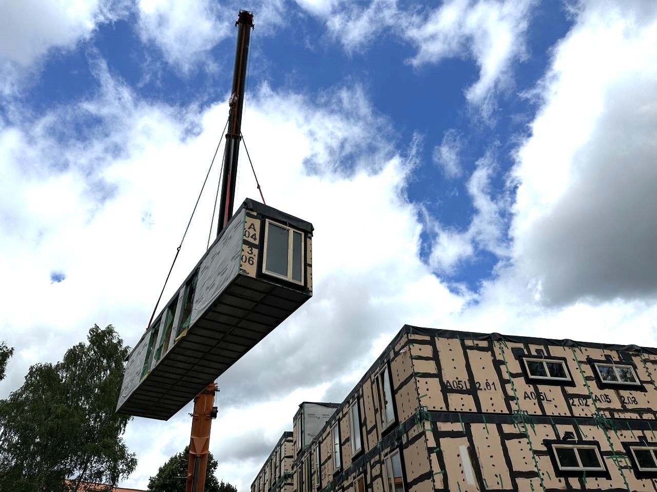 W niespełna miesiąc przy ulicy Karola Miarki zamontowano prawie wszystkie 56 modułów tworzących budynek demonstratora technologii. Co więcej, 29 mieszkań, które powstają w obiekcie, są już wyposażone w kuchnie i łazienki. W najbliższych dniach rozpoczną się prace nad dachem obiektu i pracami instalacyjnymi. To pierwszy od lat budynek komunalny, który powstaje w Mysłowicach.