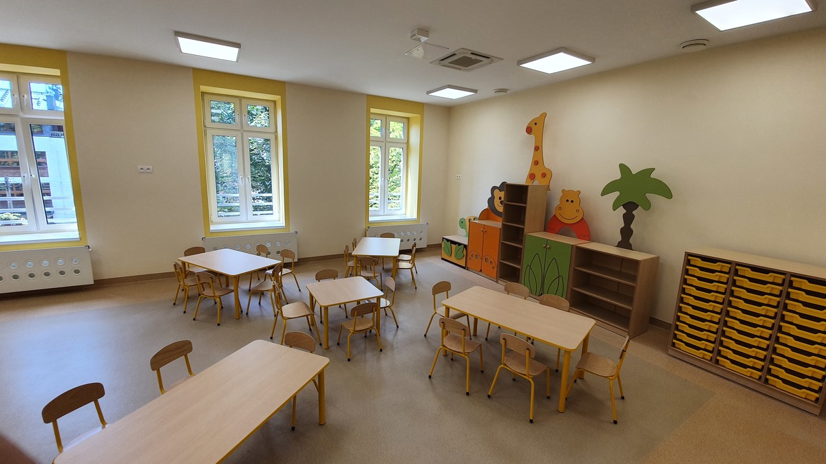 – Jeżeli popatrzymy na budynek z zewnątrz, to została zachowana architektura tego budynku, a w środku nowoczesność. Połączenie tego, co zabytkowe, tego, co jest perełką architektury naszej śląskiej. Wchodzimy do środka, piękne nowoczesne pomieszczenia, takie jak teraz się buduje, z pełną infrastrukturą, pięknie wyposażoną kuchnią, windami, ale też bardzo kolorowymi salami dla dzieci – mówi Beata Białowąs, członek zarządu województwa śląskiego.
