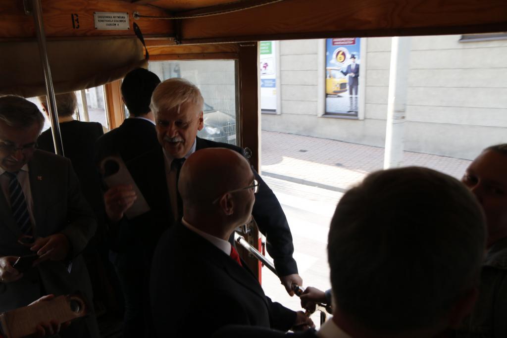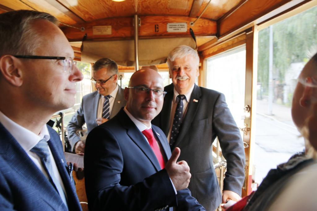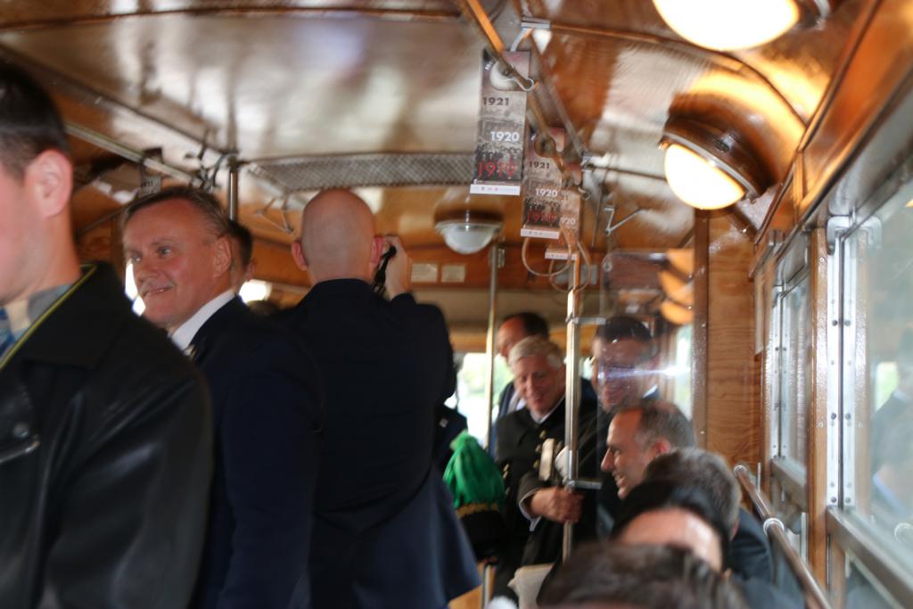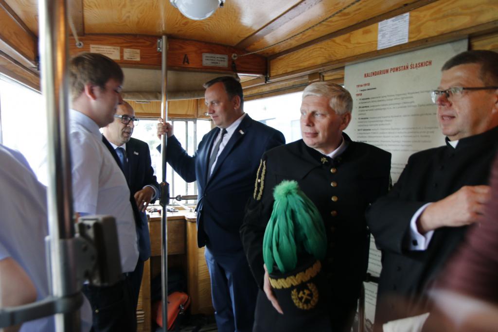 W premierowym przejeździe uczestniczyli m.in. Minister Rodziny, Pracy i Polityki Społecznej Bożena Borys Szopa, Wojewoda Śląski Jarosław Wieczorek, Marszałek Województwa Śląskiego Jakub Chełstowski, Przewodniczący Metropolii Kazimierz Karolczak, Minister w Kancelarii Prezydenta RP Agnieszka Lenartowicz-Łysik, Eurodeputowana Izabela Kloc, Prezydent Mysłowic Dariusz Wójtowicz, Prezydent Świętochłowic Daniel Beger, Przewodniczący Rady Miasta Tomasz Papaj, prezes Tramwaje Śląskie SA Bolesław Knapik, dyrektor kancelarii UM Mysłowice Michał Woźniczko, dyrektor KWK Mysłowice-Wesoła Aleksander Chowaniec, prezes SRK Janusz Gałkowski, prezes PGG Tomasz Rogala, dyrektor Muzeum Powstań Śląskich Halina Bieda, ks. Rafał Ryszka.