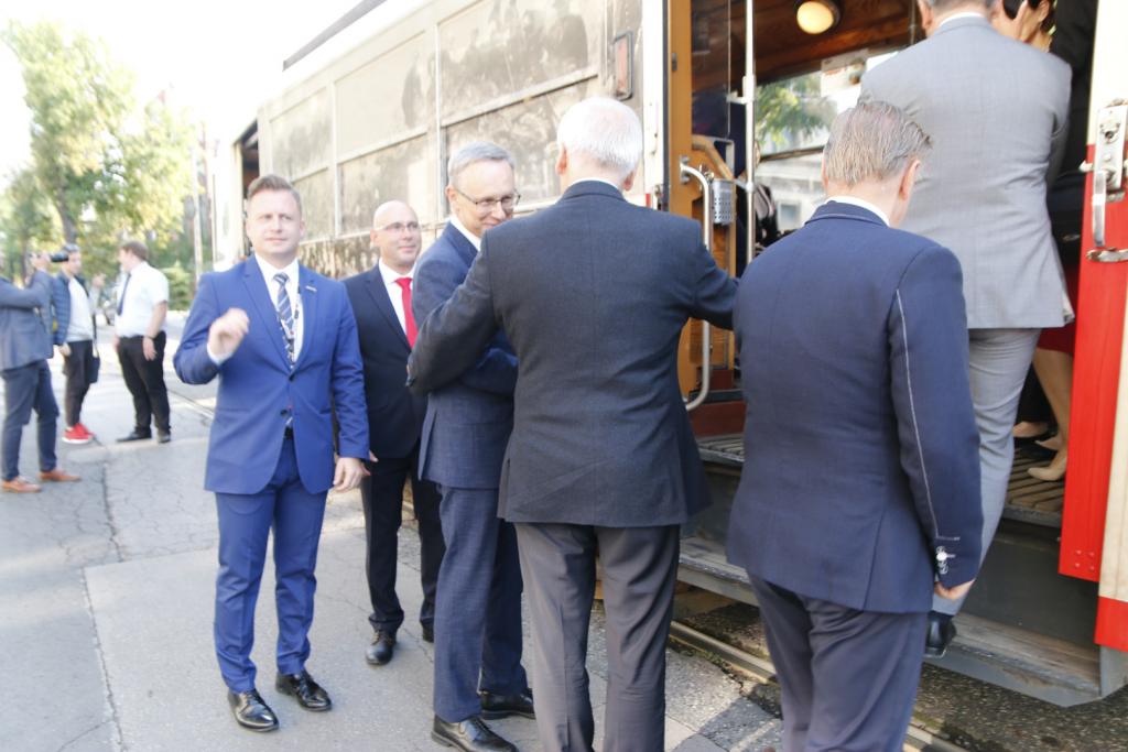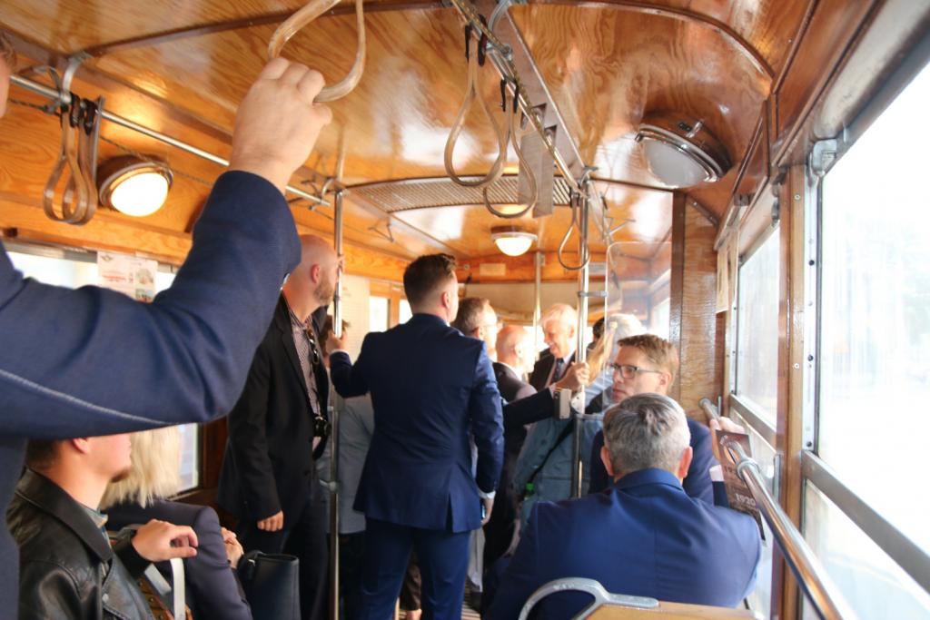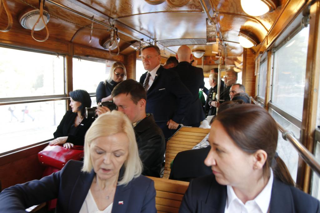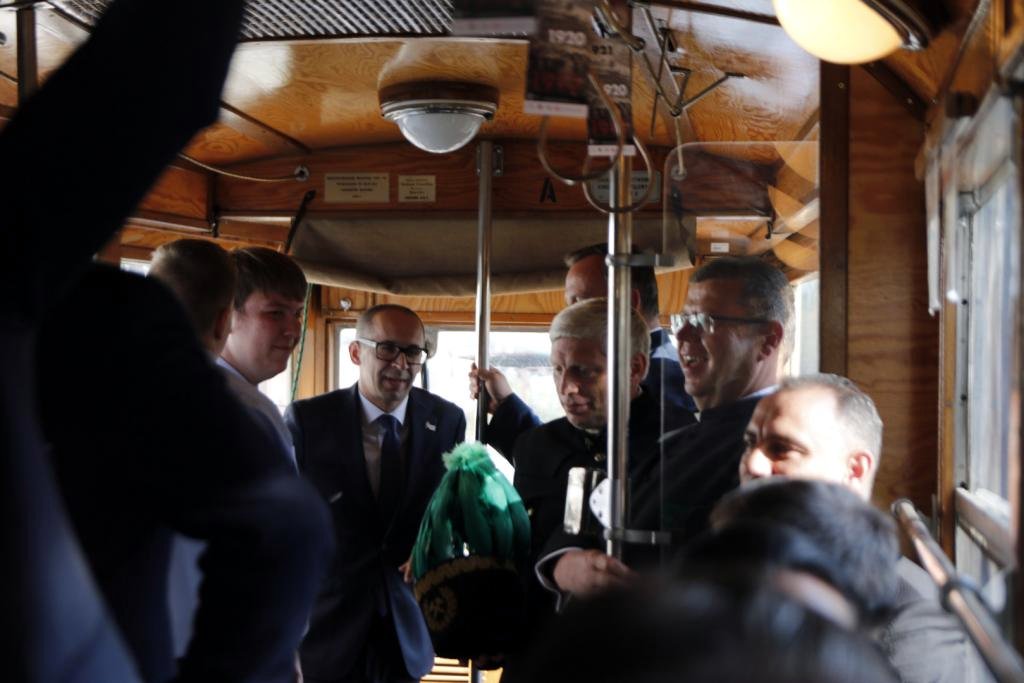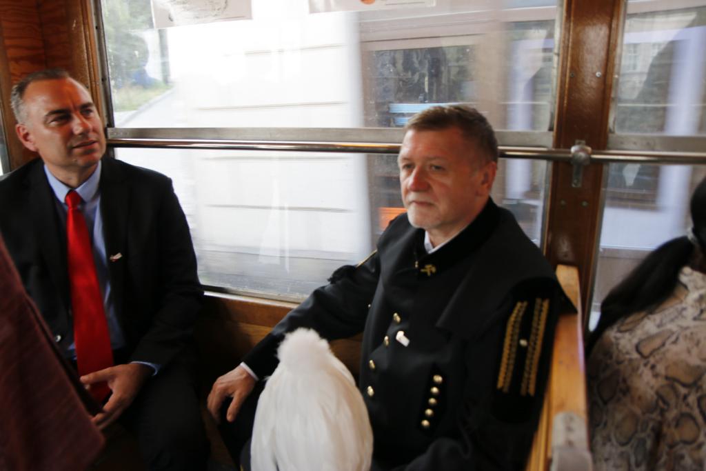 W premierowym przejeździe uczestniczyli m.in. Minister Rodziny, Pracy i Polityki Społecznej Bożena Borys Szopa, Wojewoda Śląski Jarosław Wieczorek, Marszałek Województwa Śląskiego Jakub Chełstowski, Przewodniczący Metropolii Kazimierz Karolczak, Minister w Kancelarii Prezydenta RP Agnieszka Lenartowicz-Łysik, Eurodeputowana Izabela Kloc, Prezydent Mysłowic Dariusz Wójtowicz, Prezydent Świętochłowic Daniel Beger, Przewodniczący Rady Miasta Tomasz Papaj, prezes Tramwaje Śląskie SA Bolesław Knapik, dyrektor kancelarii UM Mysłowice Michał Woźniczko, dyrektor KWK Mysłowice-Wesoła Aleksander Chowaniec, prezes SRK Janusz Gałkowski, prezes PGG Tomasz Rogala, dyrektor Muzeum Powstań Śląskich Halina Bieda, ks. Rafał Ryszka.