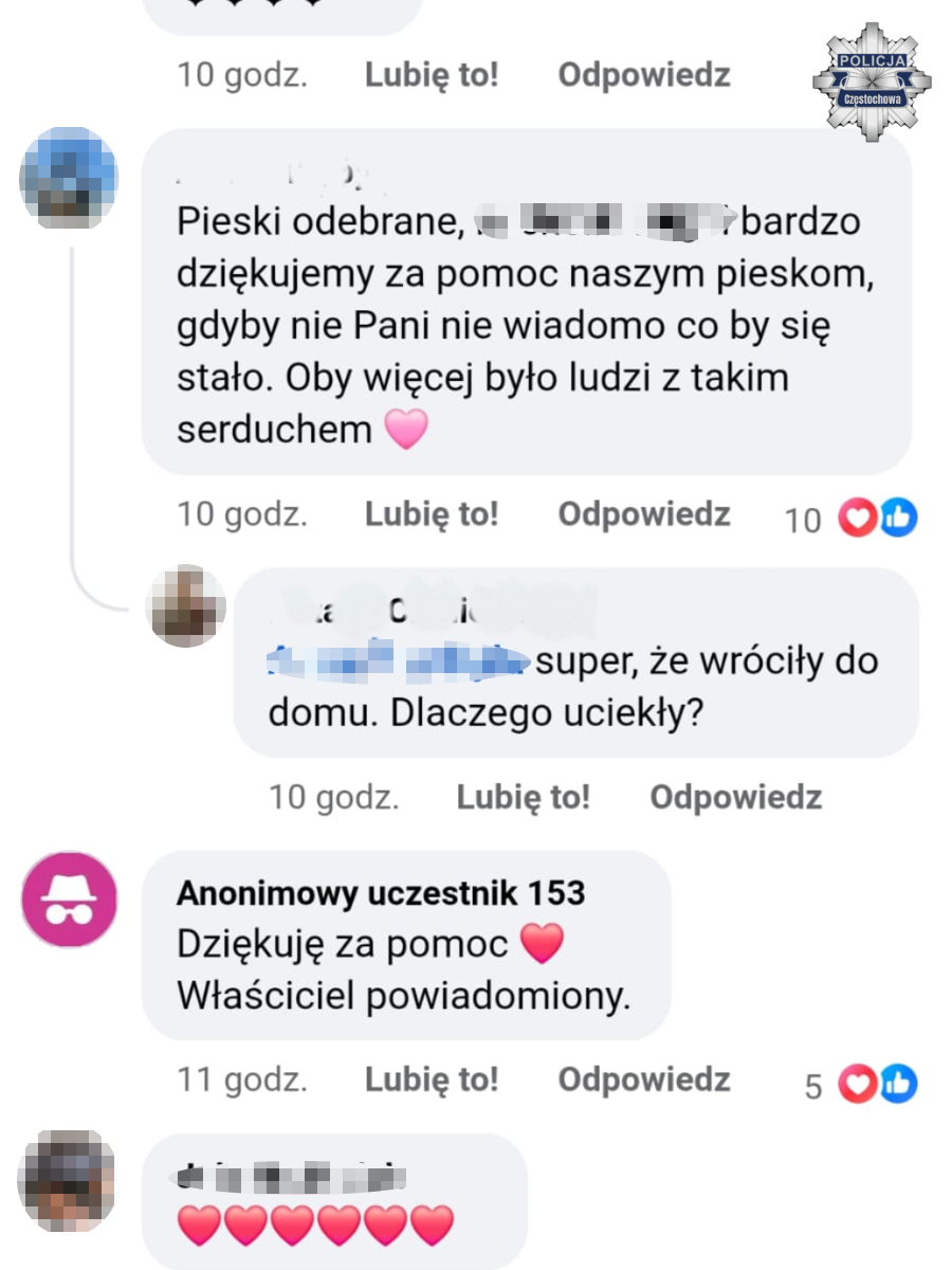 „Na odzew ze strony internautów nie czekała długo. Po chwili skontaktowała się z nią właścicielka psów, która za pośrednictwem komunikatora wyraziła jej swoją wdzięczność i poinformowała, że przyjechała na miejsce i zabrała swoje pupile” – czytamy w komunikacie policji.