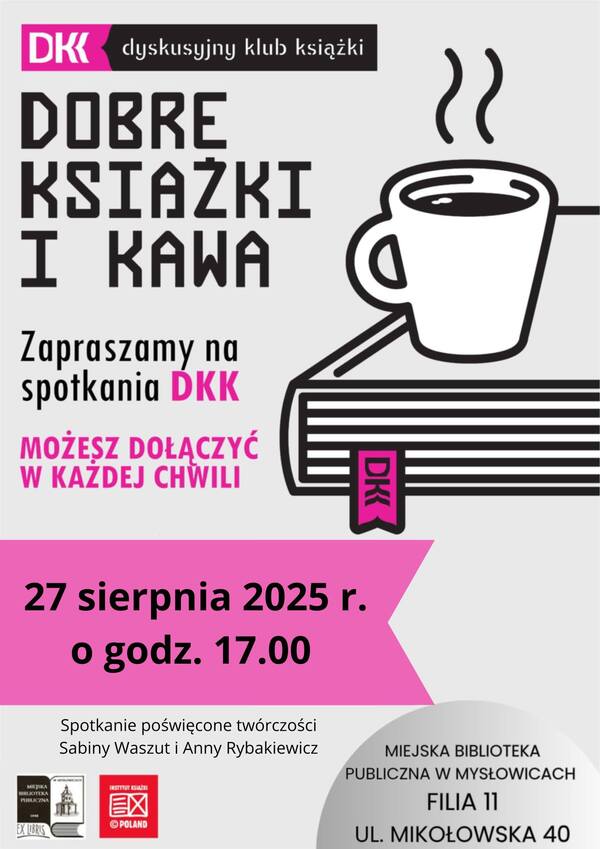 Tym razem uczestnicy klubu pochylą się nad twórczością dwóch autorek – Sabiny Waszut i Anny Rybakiewicz. Będzie to okazja, by podzielić się swoimi spostrzeżeniami, posłuchać innych interpretacji i lepiej zrozumieć literacki świat stworzony przez pisarki. To wszystko przy filiżance kawy, co z pewnością nada wydarzeniu jeszcze bardziej przyjaznego charakteru.