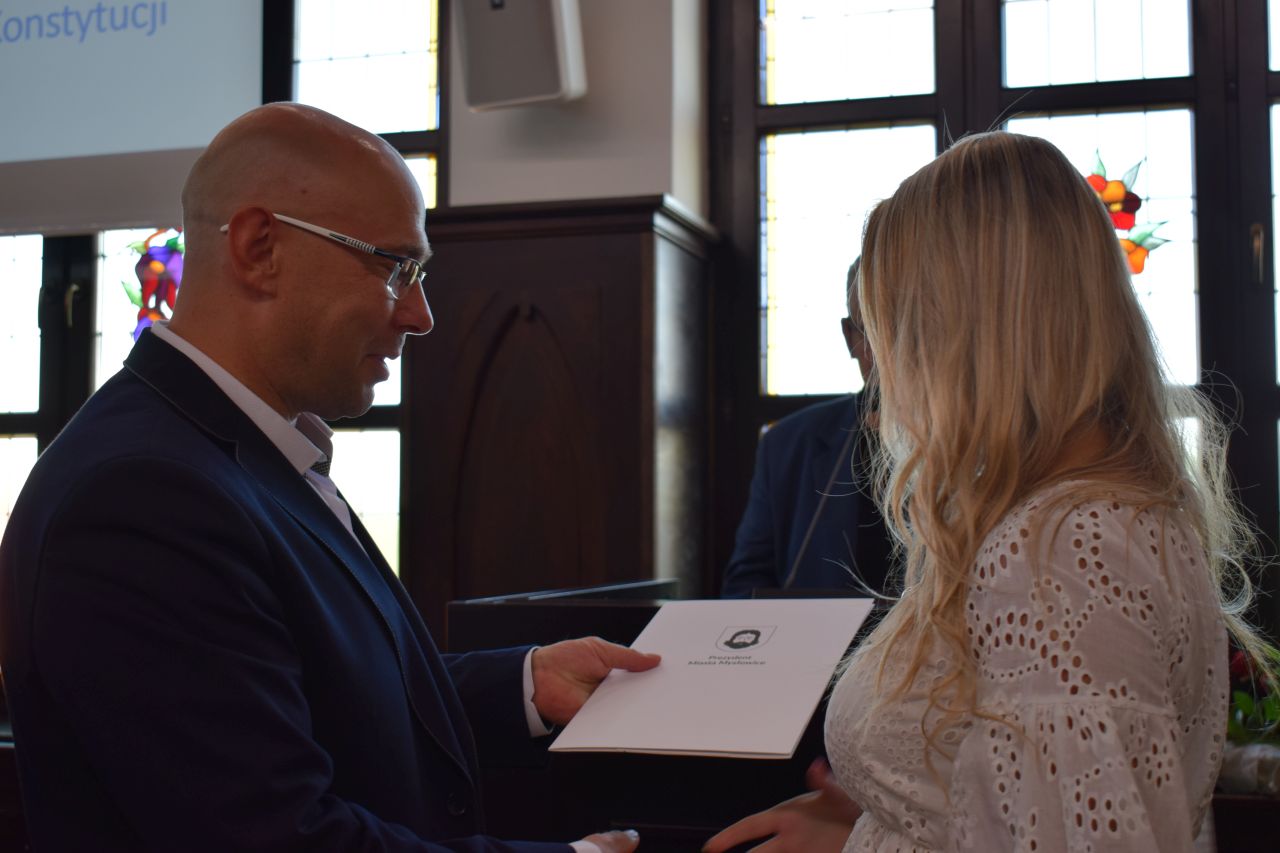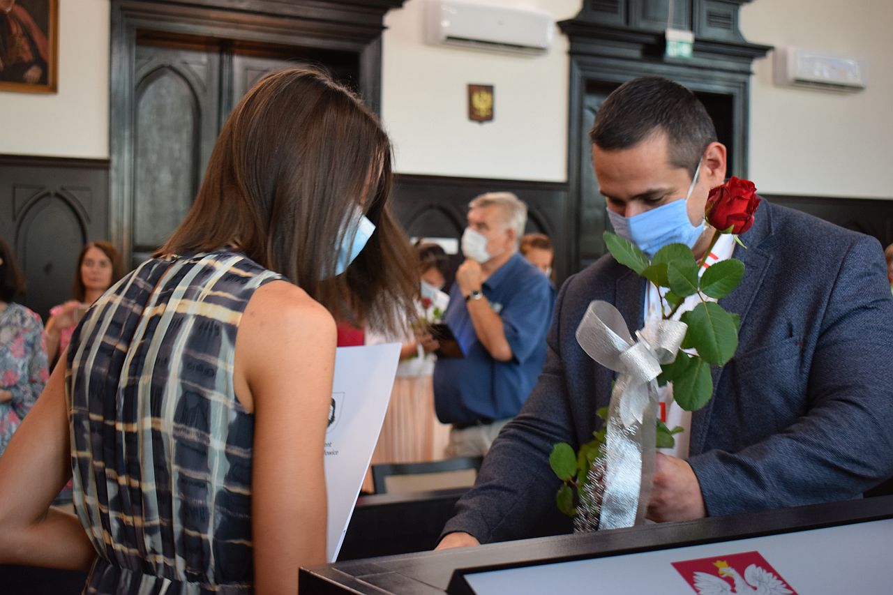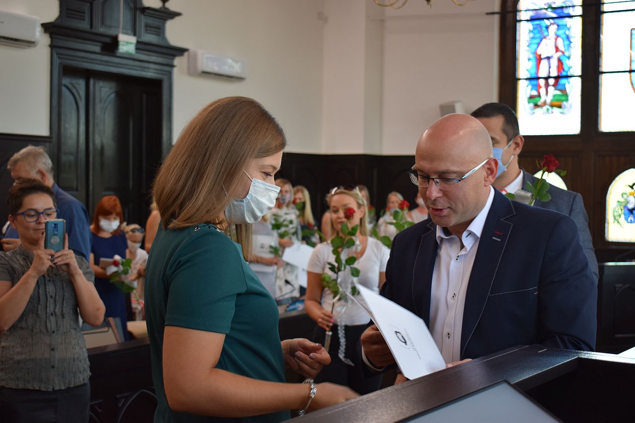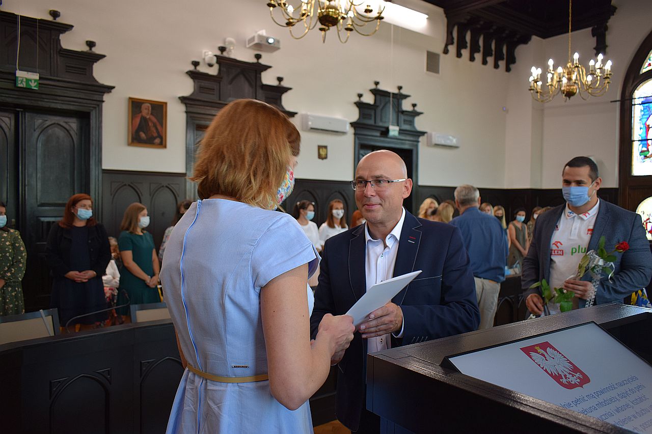 Dziś w południe w magistracie miało miejsce wręczenie nauczycielskich nominacji na wyższe stopnie zawodowe. Z rąk naczelnika wydziału edukacji Macieja Lisaka-Zbrońskiego oraz prezydentów Dariusza Wójtowicza i Wojciecha Chmiela 28 pedagogów odebrało awans na stopień nauczyciela mianowanego. Byli to: