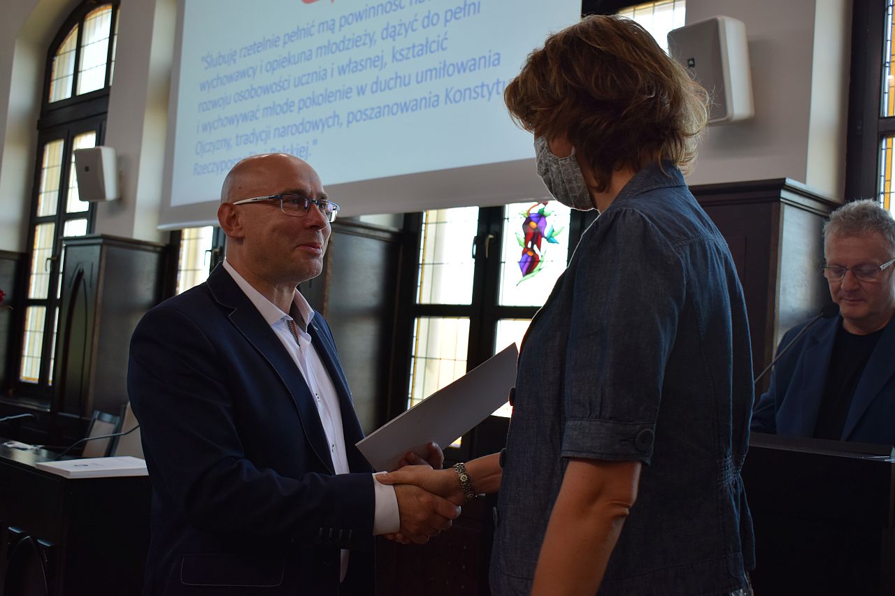 Po złożeniu przez nauczycieli ślubowania prezydent wręczył także Marcie Ostrowskiej nominację na dyrektora Przedszkola nr 16 z Oddziałami Integracyjnymi, a Agnieszce Żymle na dyrektora Zespołu Szkolno-Przedszkolnego nr 2. Panie pokierują placówkami przez 5 najbliższych lat. Pożegnano także ustępującą dyrektor P16 Marię Michalską.