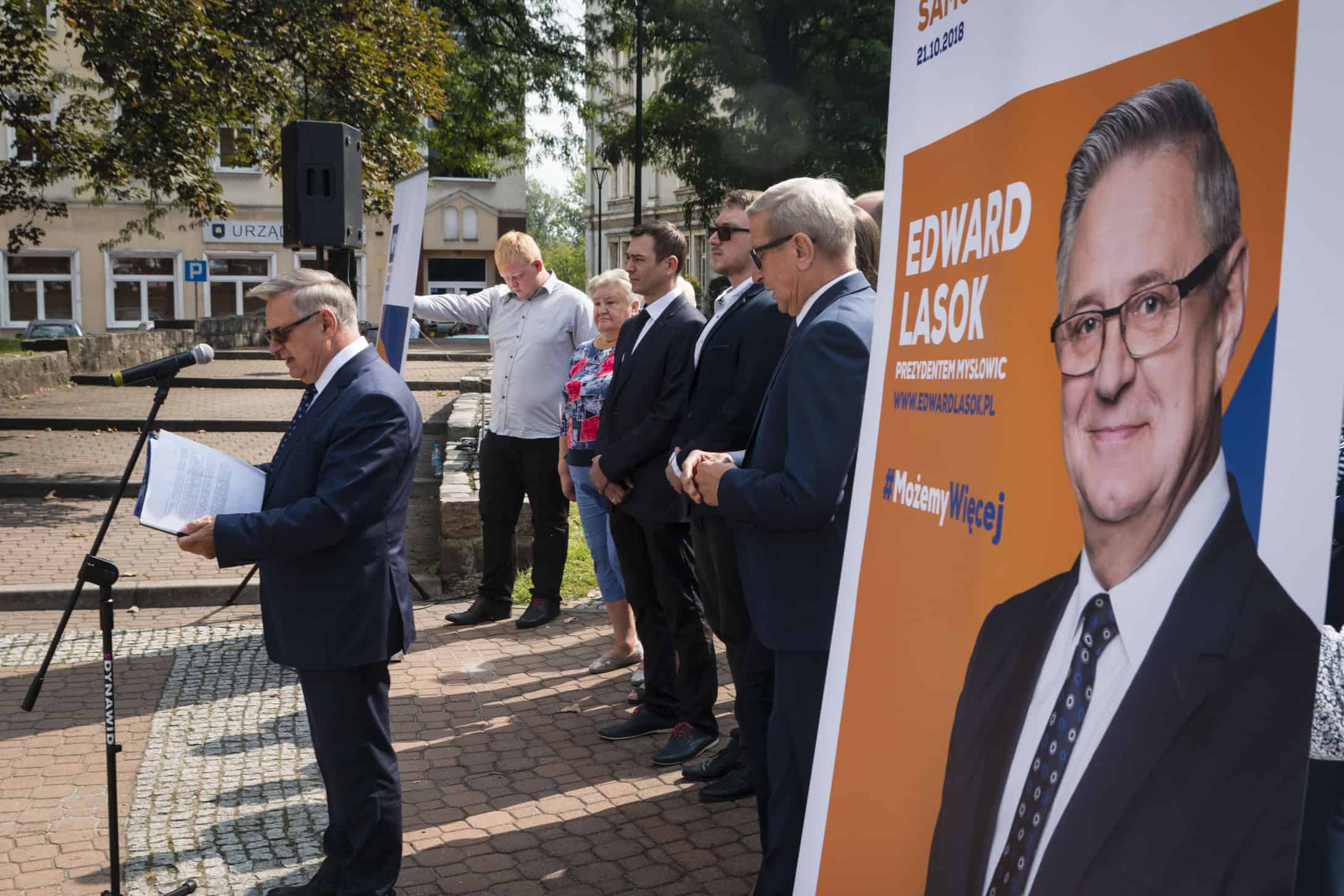 Przy ogłoszeniu informacji o starcie prezydentowi towarzyszyli radni oraz kandydaci na radnych Mysłowickiego Porozumienia Samorządowego. Edward Lasok jest prezydentem Mysłowic od 2010 roku.