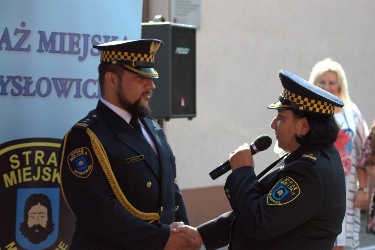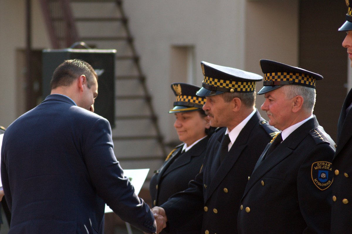 Były kwiaty i życzenia od przedstawicieli miejskich jednostek i służb, ale przede wszystkim nagrody pieniężne i awansy na wyższe stopnie służbowe. Młodszy inspektor Sebastian Stachoń awansował na stanowisko inspektora, strażnik Walenty Janiszewski na stanowisko starszego strażnika, a młodszy strażnik Filip Palkowski na stanowisko strażnika. Ponadto prezydent przyznał nagrody wszystkim strażnikom. Podczas odprawy ślubowanie złożył także nowy pracownik mysłowickiej straży miejskiej Mariusz Mańkowski.