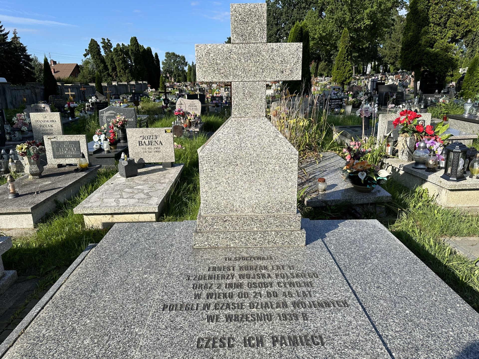 Kolejnym miejscem pamięci był zbiorowy grób wojenny Ernesta Kurzaka, trzech nieznanych żołnierzy Wojska Polskiego i dwóch cywilów poległych w czasie działań wojennych we wrześniu 1939 roku, który znajduje się na nowym cmentarzu katolickim przy ulicy Mikołowskiej.