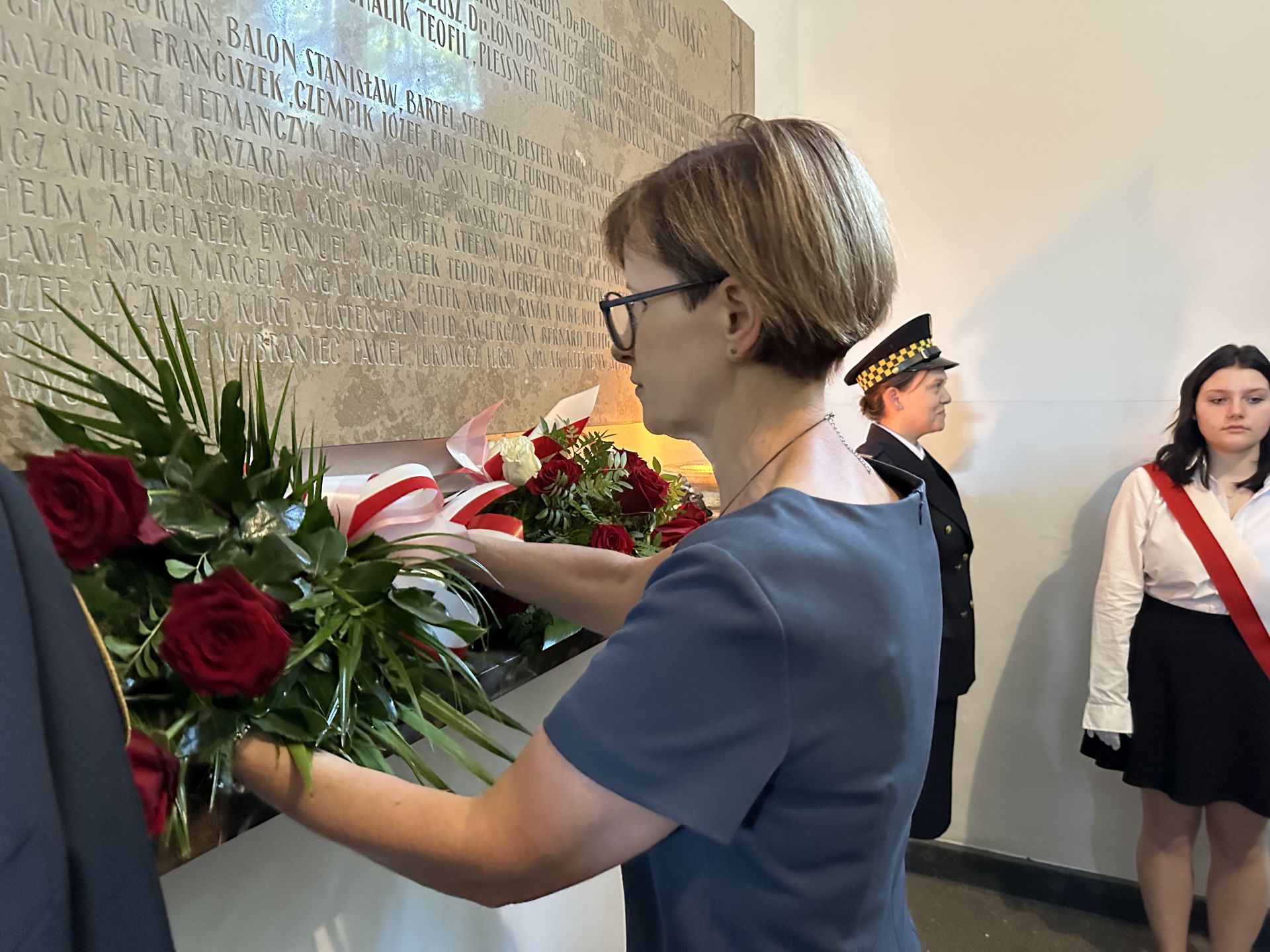 Następnie delegacje przeszły do budynku I Liceum Ogólnokształcącego im. Tadeusza Kościuszki, gdzie wraz z przedstawicielami dyrekcji złożyły kwiaty pod tablicą upamiętniającą nauczycieli i wychowanków szkoły poległych i pomordowanych przez Niemców w czasie II wojny światowej.