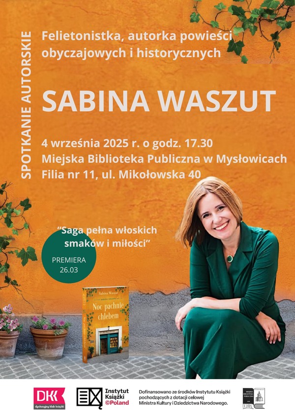 W ramach kolejnego spotkania Dyskusyjnego Klubu Książki w filii nr 11 Miejskiej Biblioteki Publicznej w Mysłowicach zagości Sabina Waszut, felietonistka oraz autorka powieści obyczajowych i historycznych. Wydarzenie odbędzie się w czwartek, 4 września.