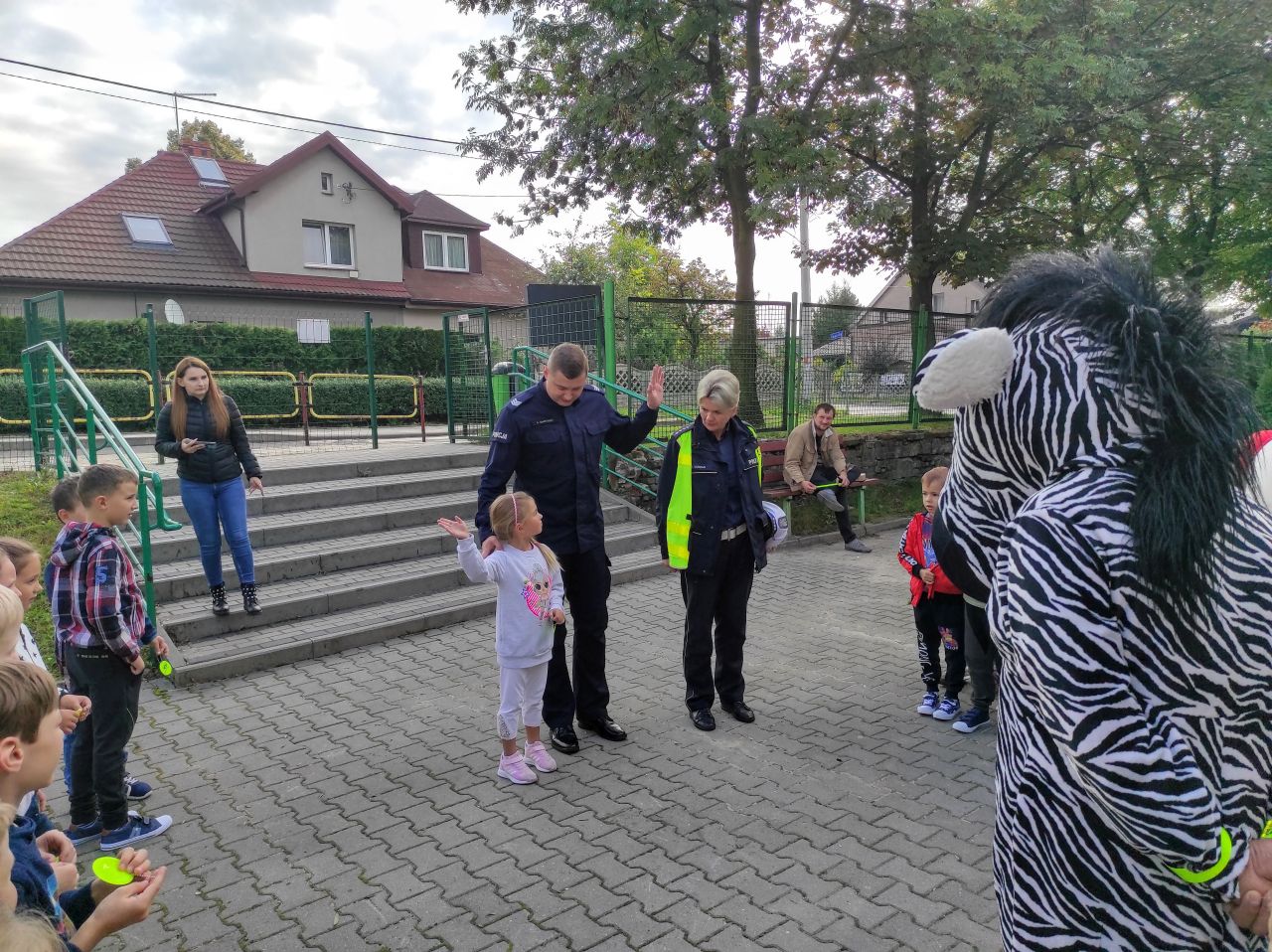 Policjanci opowiedzieli najmłodszym, jak poprawnie i bezpiecznie przechodzić przez ulicę, czego absolutnie nie wolno robić w obrębie przejścia dla pieszych i jak komunikować się z kierowcami, gdy chcemy wkroczyć na „zebrę”. „Prawdziwa” zebra wręczała zresztą maluchom odblaski, a mundurowi wytłumaczyli im, do czego służą i co jeszcze mogą zrobić, by być widocznymi na drodze. Odbyła się oczywiście także praktyczna lekcja przechodzenia przez jezdnię.