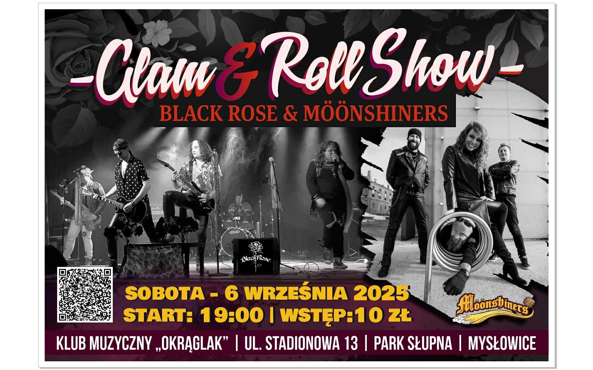 6 września Mysłowice staną się stolicą rock’n’rolla. W Klubie Okrąglak odbędzie się wyjątkowy wieczór pod hasłem Glam and Roll Show. Na scenie pojawią się dwie formacje, które gwarantują moc energii i gitarowych emocji – Black Rose oraz Möönshiners.