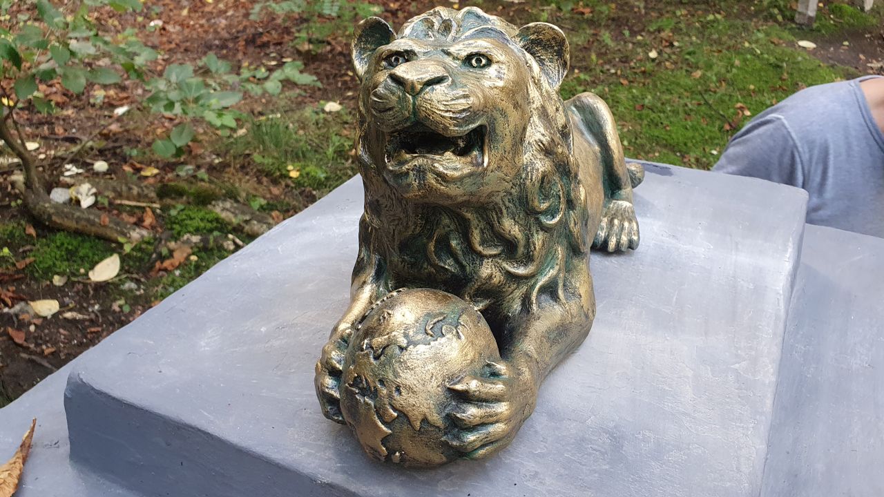Największą trudnością było odwzorowanie lwiej paszczy, bo na żadnym ze zdjęć nie widniała ona od przodu. Pan Leonard musiał więc improwizować. Jest on zresztą twórcą odlewów wszystkich rzeźb na postumencie.