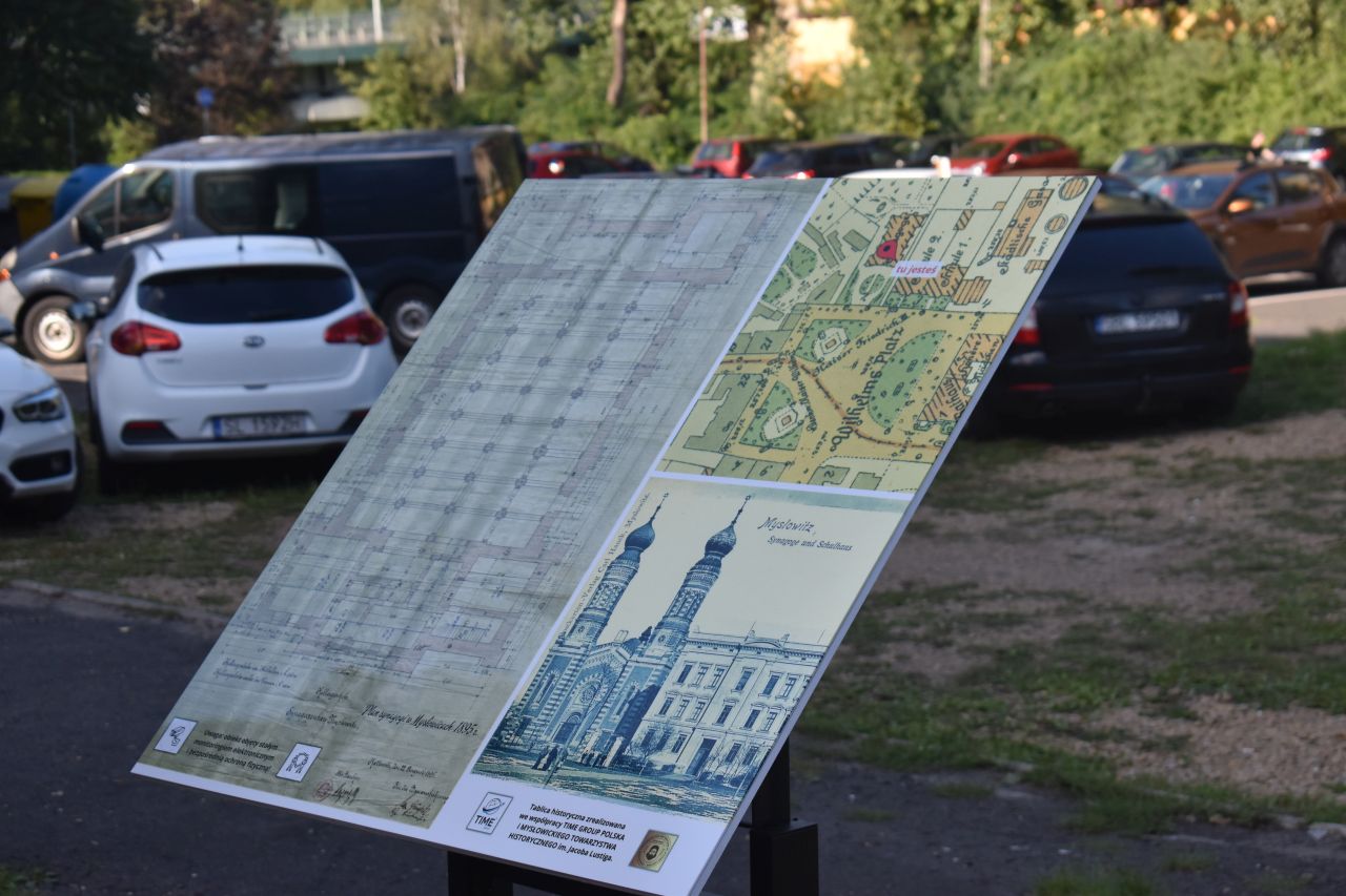 W poniedziałek 5 września na terenie biurowca firmy Time Group przy placu Wolności 2 odsłonięto tablice przypominające o funkcjonującej niegdyś w tym miejscu synagodze. Jedna z nich, opowiadająca historię, znajduje się tuż przy ulicy. Druga natomiast została postawiona w tyle, w miejscu, w którym faktycznie stała budowla.
