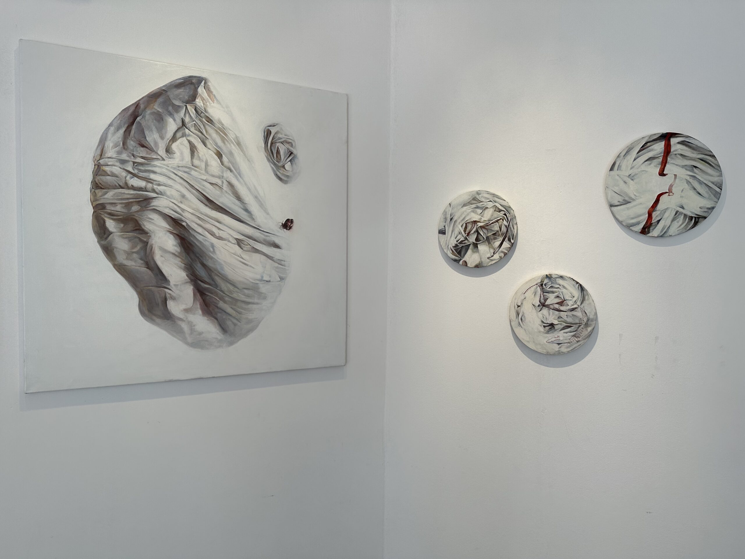 Autorka w swych pracach odszukuje historie i przeżycia zapisane w używanych kiedyś tkaninach czy śladach odciśniętych na ciele. Pod konkretnymi formami kryją się np. suknia ślubna należąca do mamy artystki, fartuszek z przedszkola czy odziedziczona pościel.