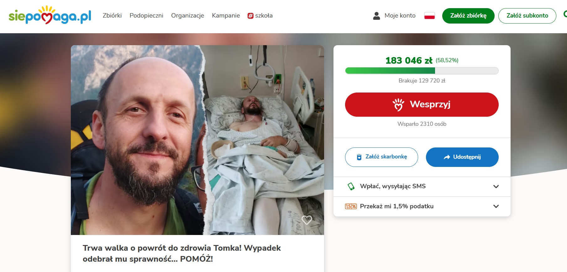 Rodzina i przyjaciele Tomasza nie poddają się i postanowili zawalczyć o jego przyszłość. Dzięki wsparciu Fundacji Siepomaga uruchomiono zbiórkę, której celem jest pokrycie kosztów rehabilitacji oraz niezbędnego sprzętu wspomagającego codzienne funkcjonowanie. Każda wpłata, nawet ta najmniejsza, przybliża mieszkańca Mysłowic do odzyskania sprawności i daje mu szansę na powrót do życia sprzed wypadku.