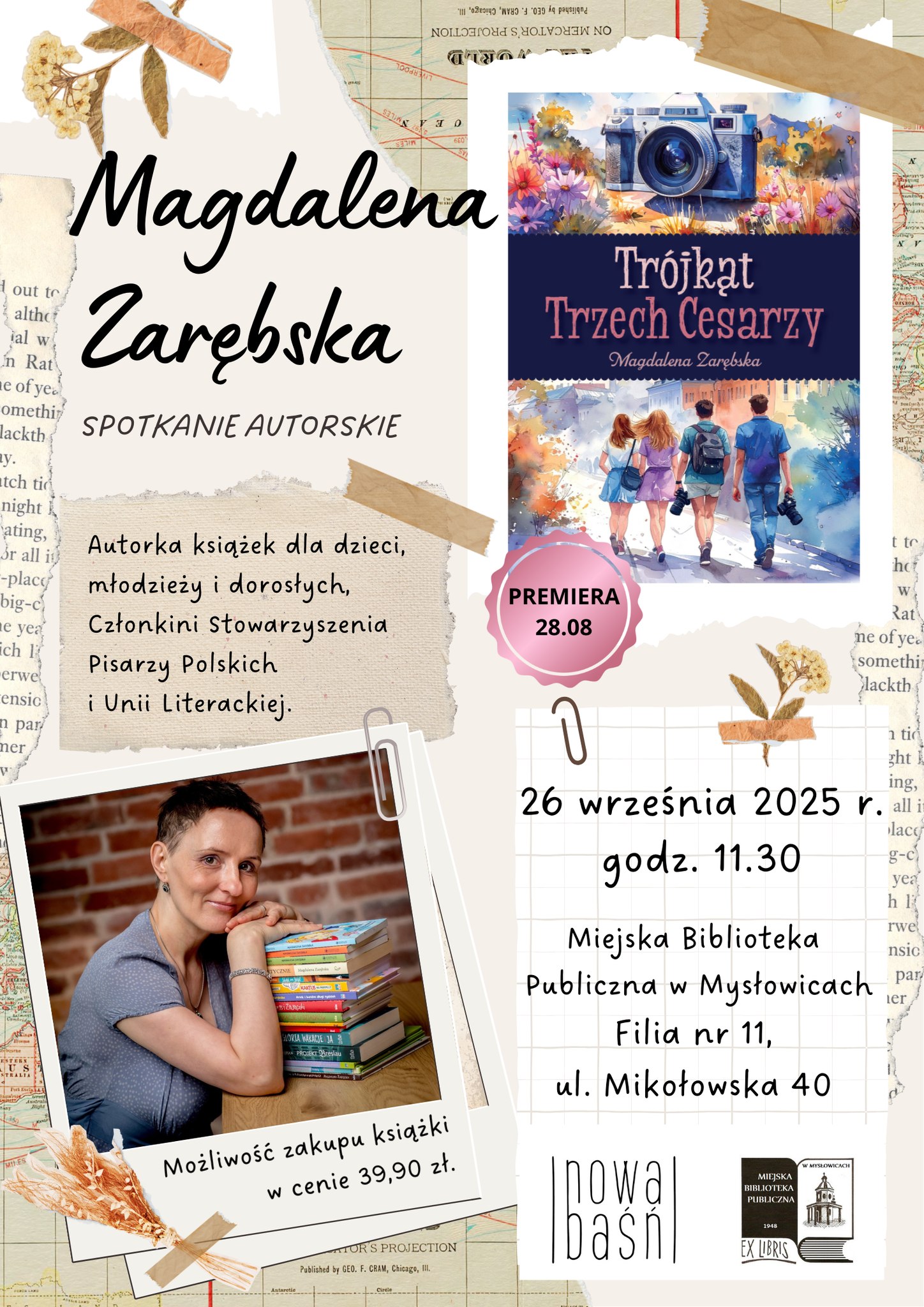 26 września o godzinie 11.30 w Filii nr 11 Miejskiej Biblioteki Publicznej w Mysłowicach (ul. Mikołowska 40) odbędzie się spotkanie autorskie z Magdaleną Zarębską.