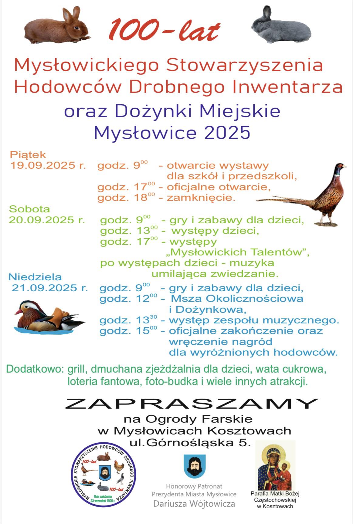 Wydarzenie odbywa się przy parafii Matki Bożej Częstochowskiej i jest połączone z miejskimi dożynkami. Pełen program znajdziecie poniżej.