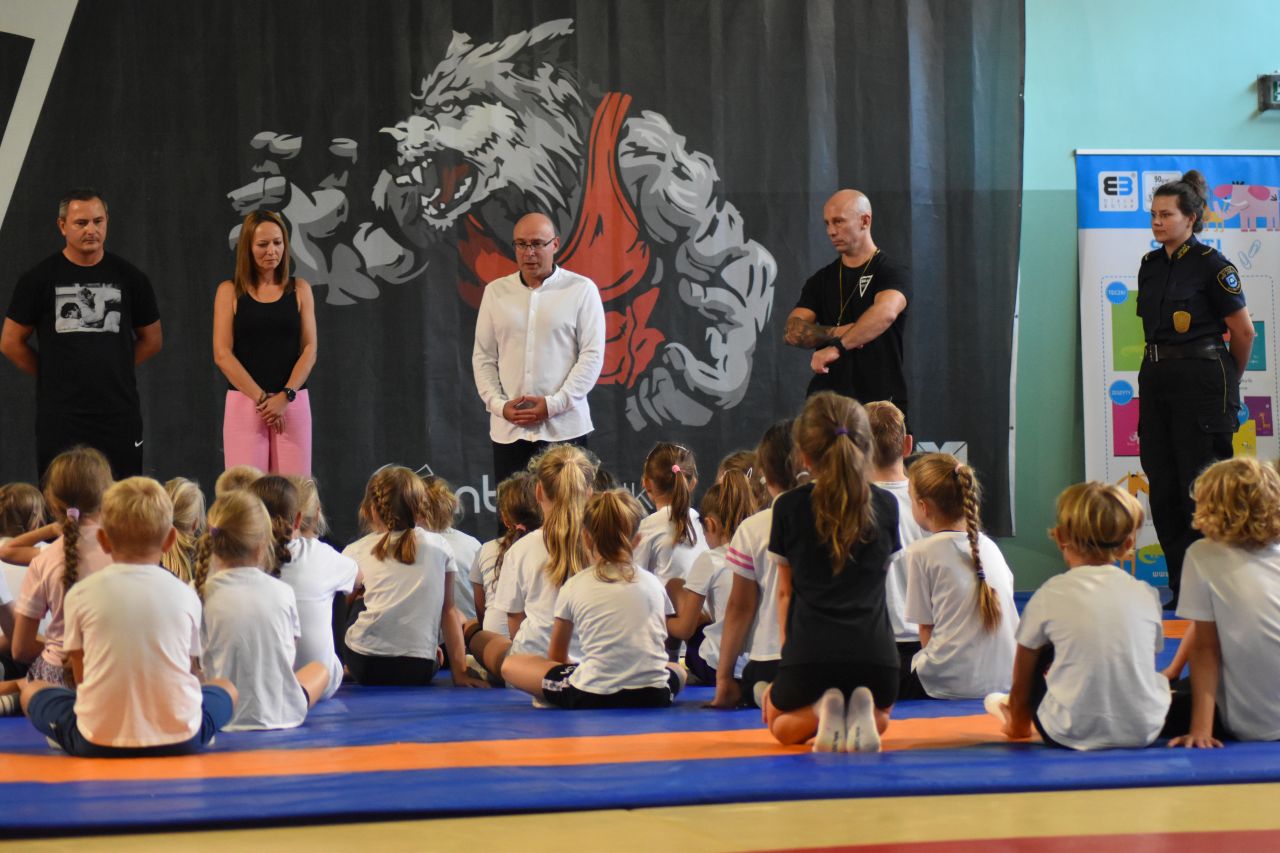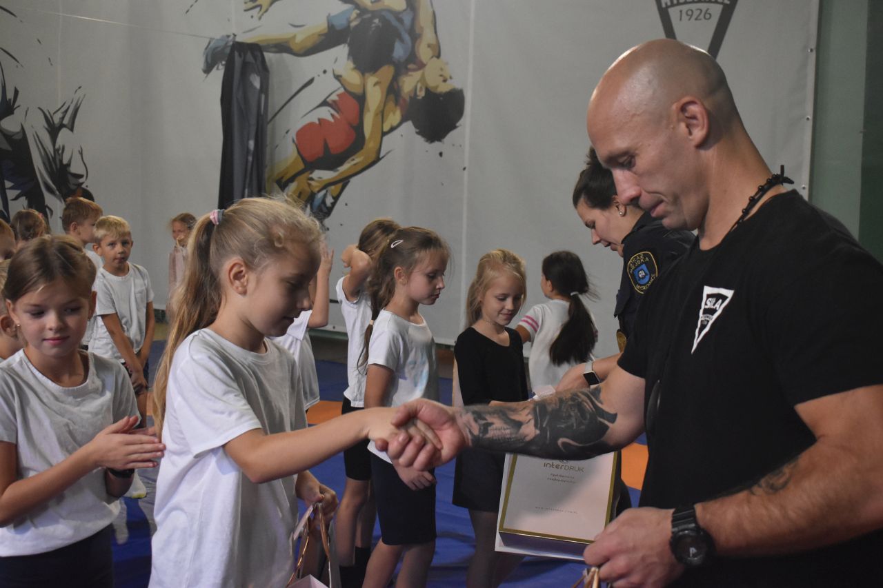 W drugiej części strażniczka miejska Dorota Garszczynska opowiedziała o tym, jak być bezpiecznym w mieście. Następnie przyszedł czas na trening pod okiem trenera Sebastiana Stachonia i prezesa klubu Andrzeja Filusa, podczas którego dzieci na czas pokonywały różne przeszkody. Najszybszą wśród dziewcząt okazała się Amelia Mól z SP 12, a najszybszym chłopcem Filip Troczek z SP 12. Na koniec wszyscy uczestnicy otrzymali drobne upominki.